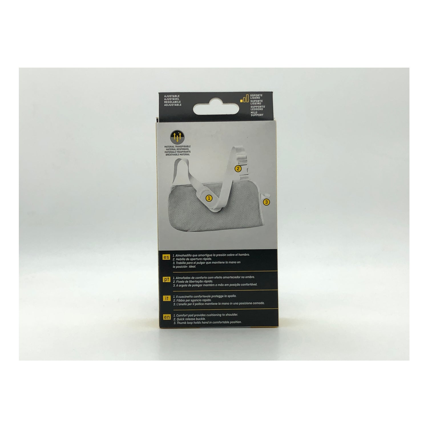 El cabestrillo de brazo de Futuro™ es la solución perfecta para estabilizar el brazo tras una caída, esguince o cirugía en hombro, codo, mano o muñeca. Incluye un mecanismo de liberación rápida con correa ajustable, muy fácil de poner y quitar. Además, gracias a sus materiales ligeros, acolchados y transpirables, te sentirás cómodo y descansado.