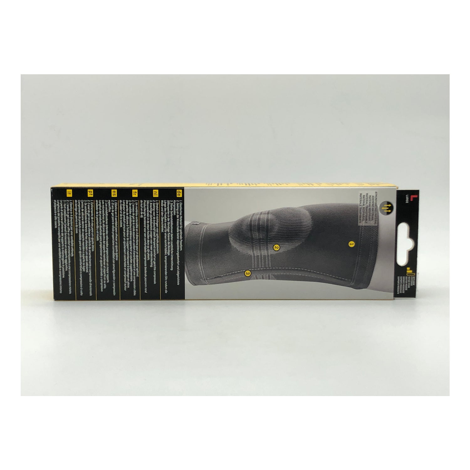 Rodillera elástica que ayuda a estabilizar la rodilla y a mejorar la recuperación de lesiones. Actúa con un efecto propioceptivo que no limita el movimiento, pero contribuye a contener y a sujetar la articulación. Cuenta con un aro de gel en la rótula que facilita la amortiguación y compresión de la zona. Además, contiene un tejido en 4 direcciones que ofrece un buen ajuste y favorece la protección de la zona. Reforzada con estabilizadores laterales y microesferas de silicona para que no se desplace. Se presenta en color gris.