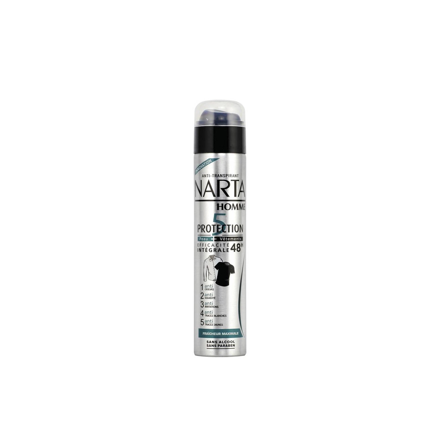Garnier Narta Men Protection 5 Antitranspirante Spray 200ml es un producto diseñado específicamente para hombres que busca ofrecer una protección completa. Este antitranspirante en formato spray combina de manera efectiva: