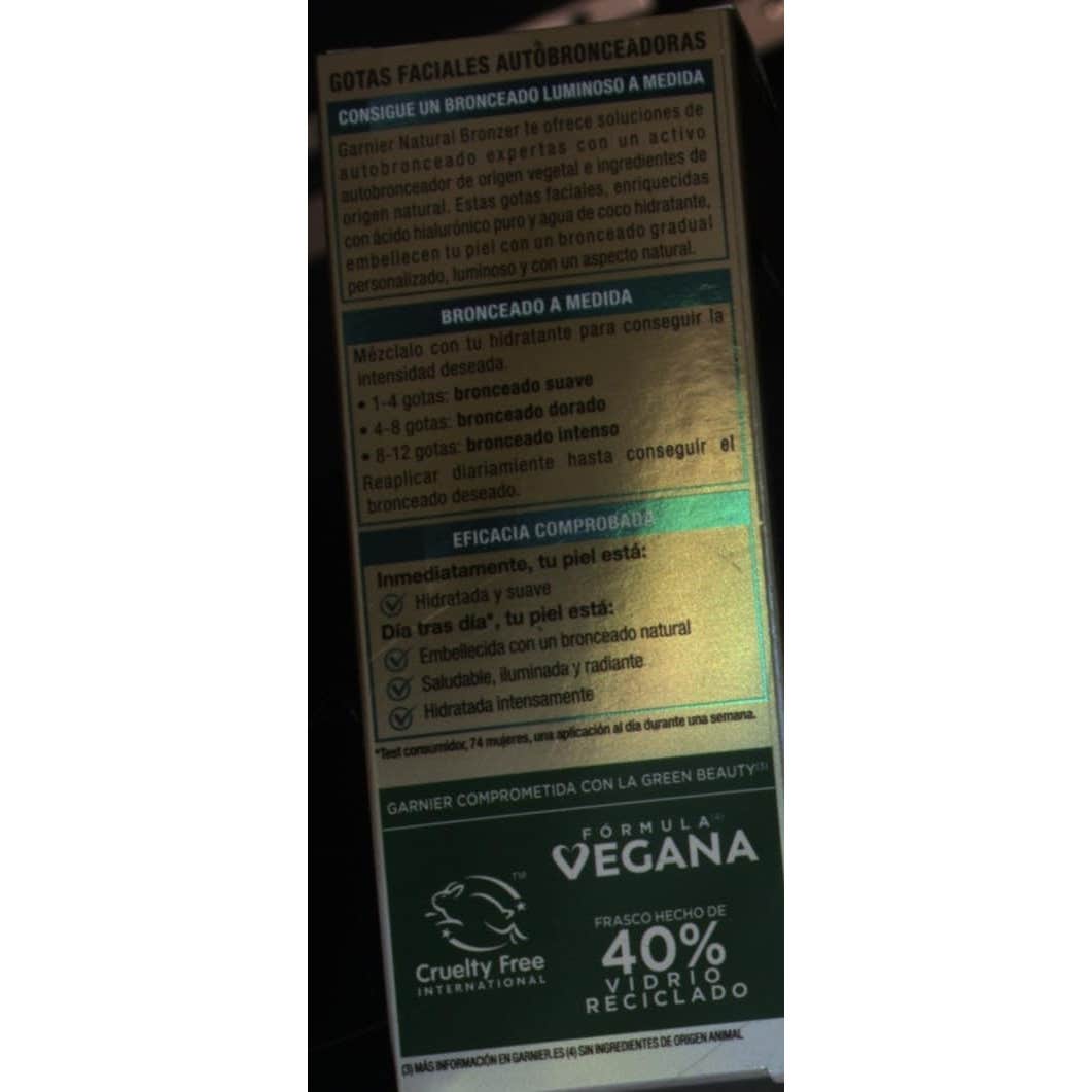 Autobronceador facial en gotas formuladas con ácido hialurónico y agua de coco. Ayuda a lucir un bronceado dorado y radiante de apariencia natural.