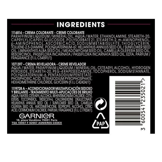 · 1 Garnier Olia Coloración Permanente Tratamiento post-coloración sin silicona.
