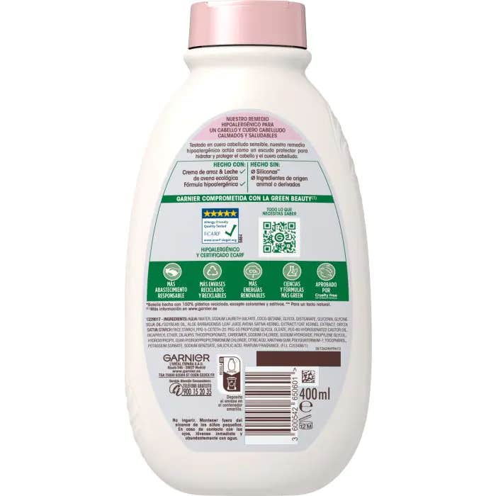 Garnier Original Remedies Champú Avena Cabello Sensible 300ml es un champú especialmente diseñado para cabellos delicados y cueros cabelludos sensibles. Su fórmula contiene leche de avena y crema de arroz, que proporcionan hidratación, nutrición y alivio a la irritación del cuero cabelludo.