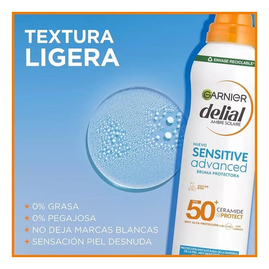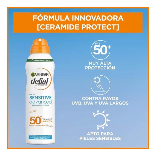 Bruma solar formulada con tecnología Ceramide Protect y filtros de muy amplio espectro SPF50. Ayuda a proteger la piel de los efectos nocivos de los rayos UVA y UVB, así como también crea una fina barrera ante los agentes externos como la arena, el agua y el cloro. Su textura no es grasa ni pegajosa y ha sido testada bajo control dermatológico. Indicada para pieles claras, sensibles o intolerantes al sol.