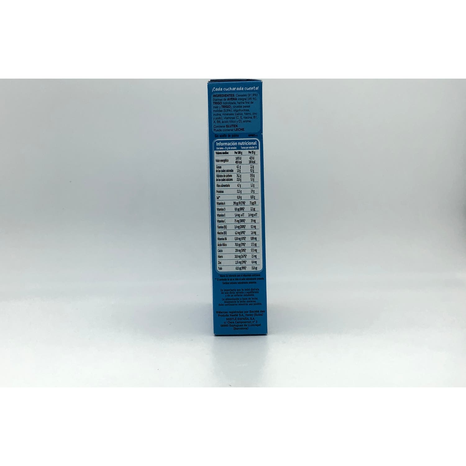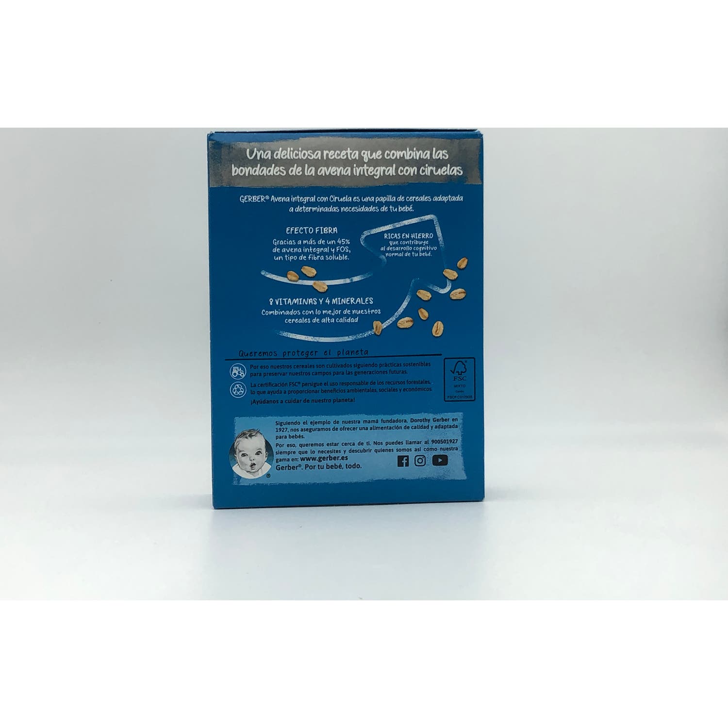 Contiene avena integral, con fibra soluble que favorece el tránsito intestinal, hierro, zinc, vitaminas A y C y probióticos. Gracias a esta fórmula, supone un alimento completo que ayuda al desarrollo cognitivo normal y a su sistema inmunitario. No contiene aceite de palma.