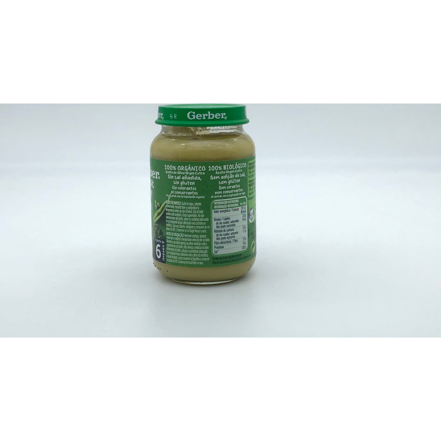 Gerber Organic Brócoli y Guisantes con Pavo 190g es un tarrito para bebés a partir de los 6 meses de edad, producido con ingredientes ecológicos 100%. Cocinado y esterilizado al baño maría, para que se pueda conservar sin necesidad de conservantes ni colorantes. No contiene sal añadida, sin gluten, sin colorantes ni conservantes ni aceite de palma. Es un alimento completo, que fomenta la dieta equilibrada y variada de los más pequeños. Ideal para introducir verduras como el brócoli y el guisante en la dieta.