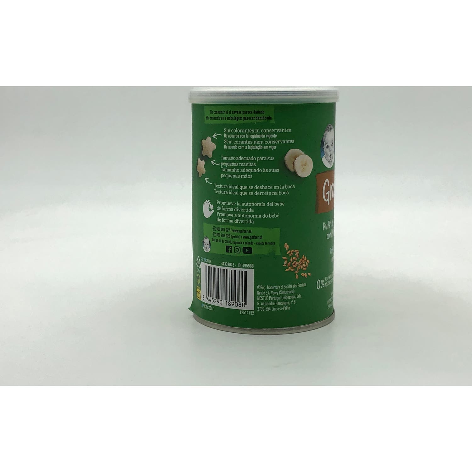 Gerber Organic Puffs Snacks de Cereales con Plátano 35g es un snack de cereales en combinación con plátanos orgánicos para bebés a partir de los 4 meses de edad.
