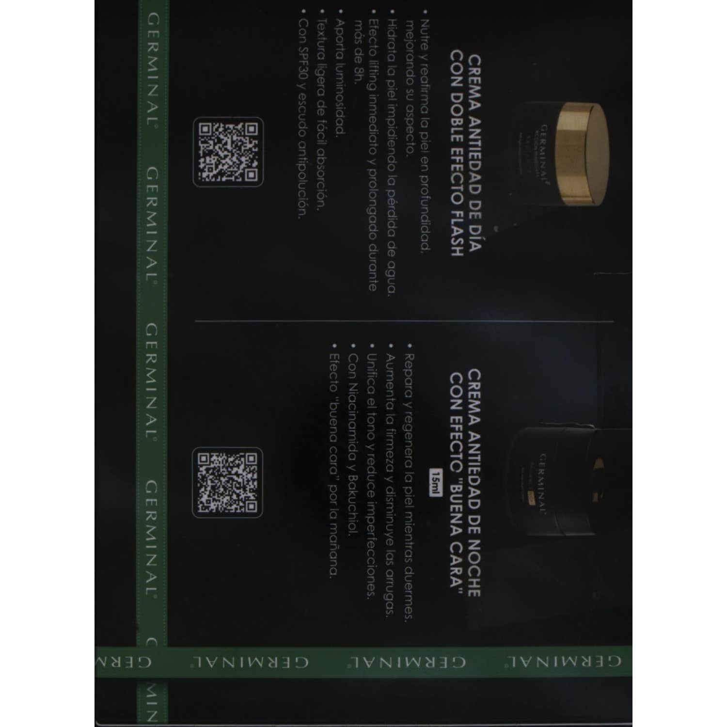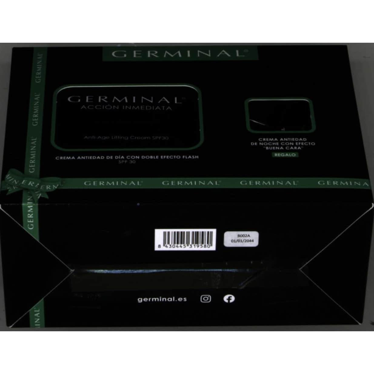 Germinal Acción Inmediata Crema Día Spf30 50ml es un pack que incluye la Crema de Día de 50 ml y la Crema de Noche de 15 ml, ideal para combatir los signos del envejecimiento cutáneo.