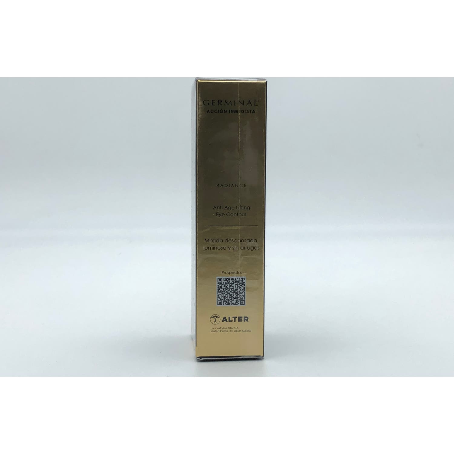 Germinal Acción Inmediata Radiance Anti Age Lifting Eye 15ml es un contorno de ojos antiedad con efecto lifting. Su fórmula, que incluye ácido hialurónico y cafeína, trabaja en conjunto para brindar una piel más firme y elástica, reduciendo arrugas, líneas de expresión, flacidez y falta de luminosidad visibles por el envejecimiento. Además, este producto elimina los signos de fatiga y estrés, ofreciendo un efecto lifting inmediato alrededor de los ojos. Indicado para todo tipo de pieles a partir de los 35 años.