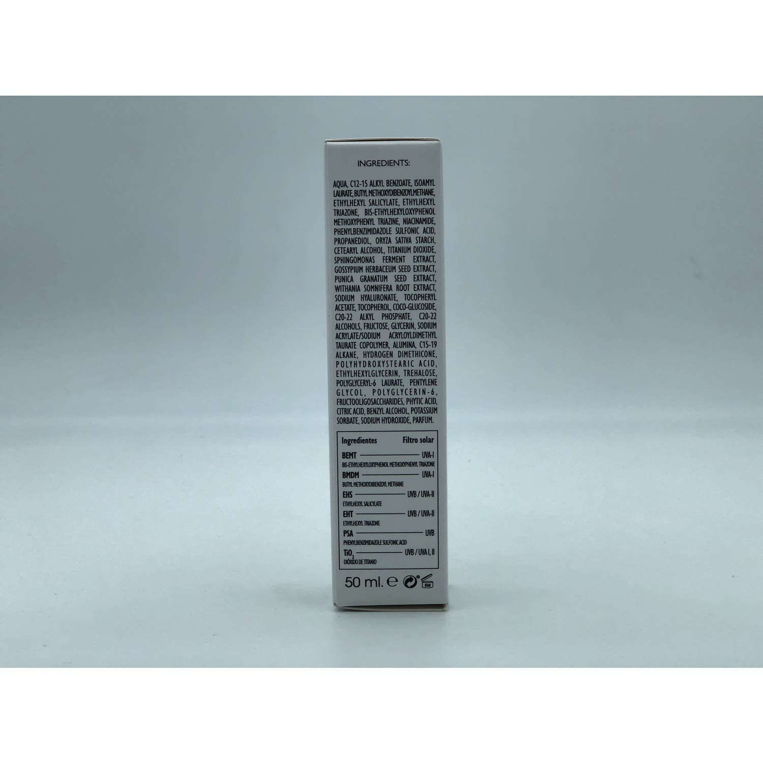Formulado con niacinamida, ácido hialurónico y ashwagandha, componentes que aportan acción antioxidante, antipolución, hidratante, reparadora y antiedad.