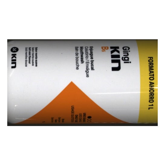Gingikin B5 Enjuague Bucal 1L es un colutorio que ayuda a eliminar las bacterias que se acumulan en la boca y son responsables de molestias gingivales como sangrado o inflamación.