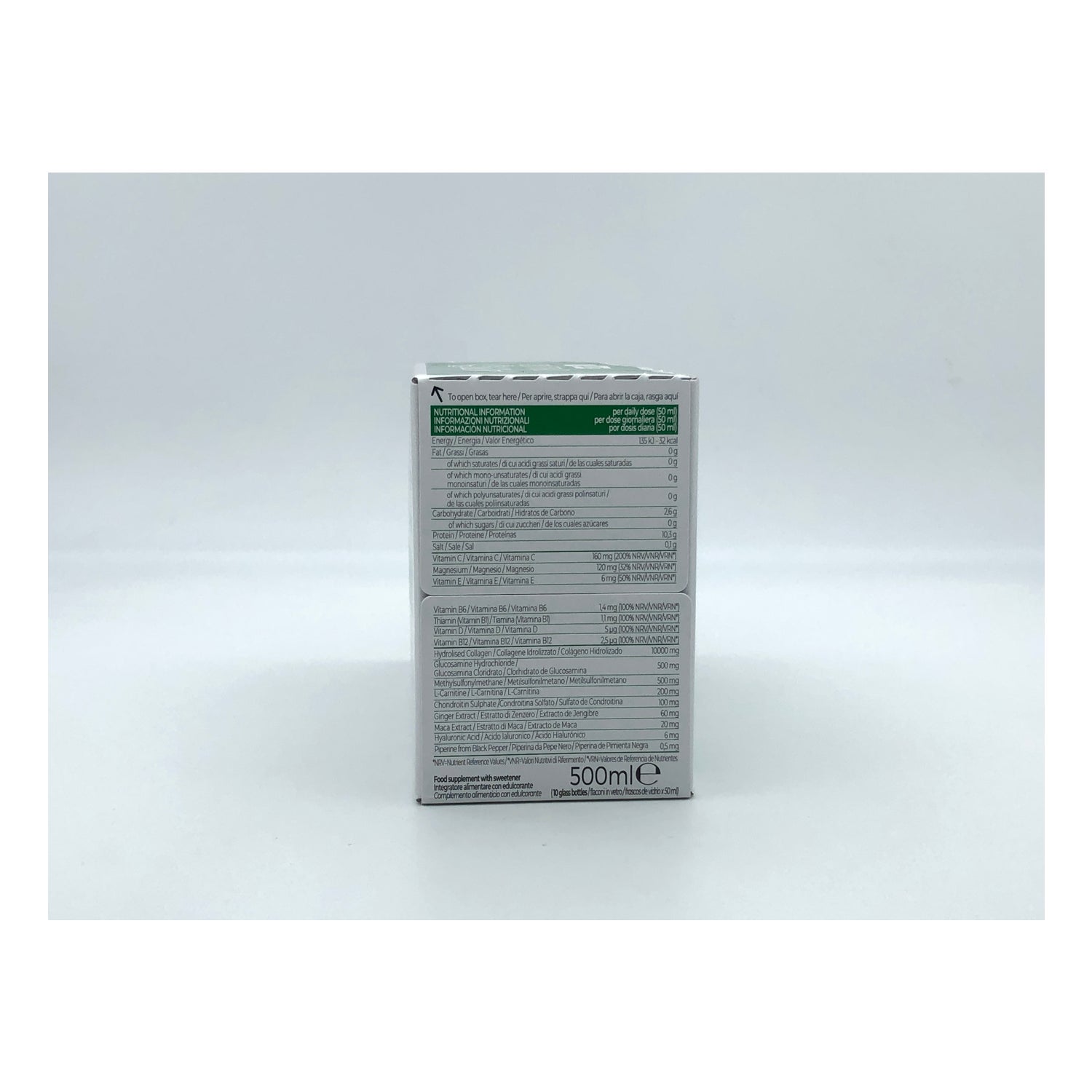 Presentado en 10 viales bebibles con un delicioso sabor tropical.