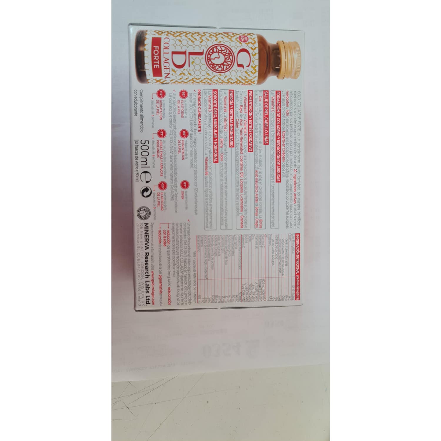 Dosis diaria recomendada: beber 1 botella al día durante 3 semanas para estimular la hidratación de la piel, 6 semanas para la suavidad de la piel, 9 semanas para la firmeza de la piel. Continuar con el tratamiento de forma constante. Agitar bien antes de usar y no exceder la dosis diaria recomendada. Cada caja contiene 10 botellas de vidrio de 50ml