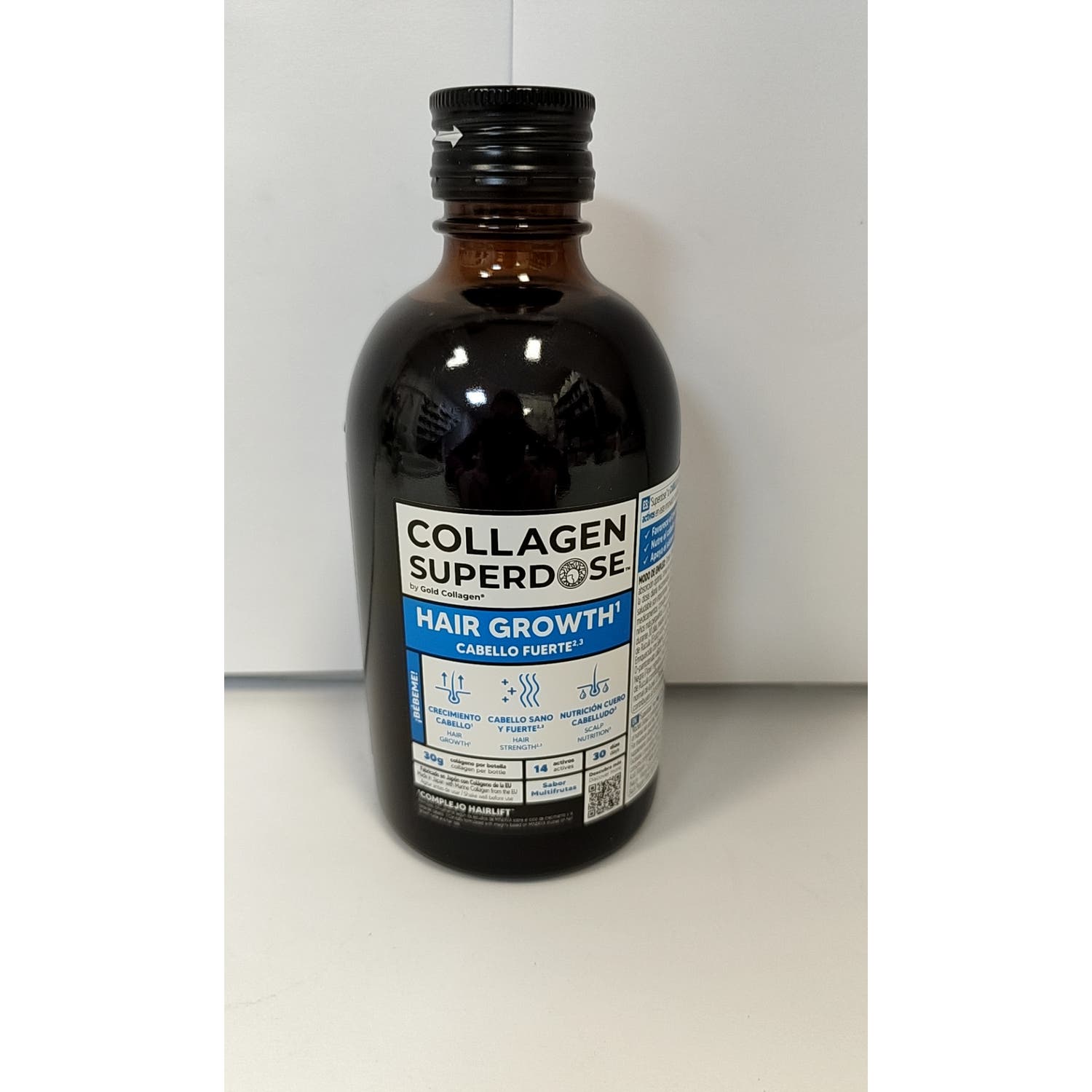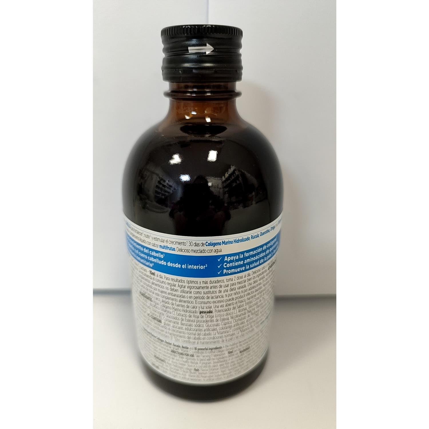 Complemento alimenticio a base de colágeno marino hidrolizado, queratina, vitamina C y zinc. Contribuye al cuidado y fortalecimiento del cabello, además favorece el estado de ánimo y el funcionamiento del sistema inmune.
