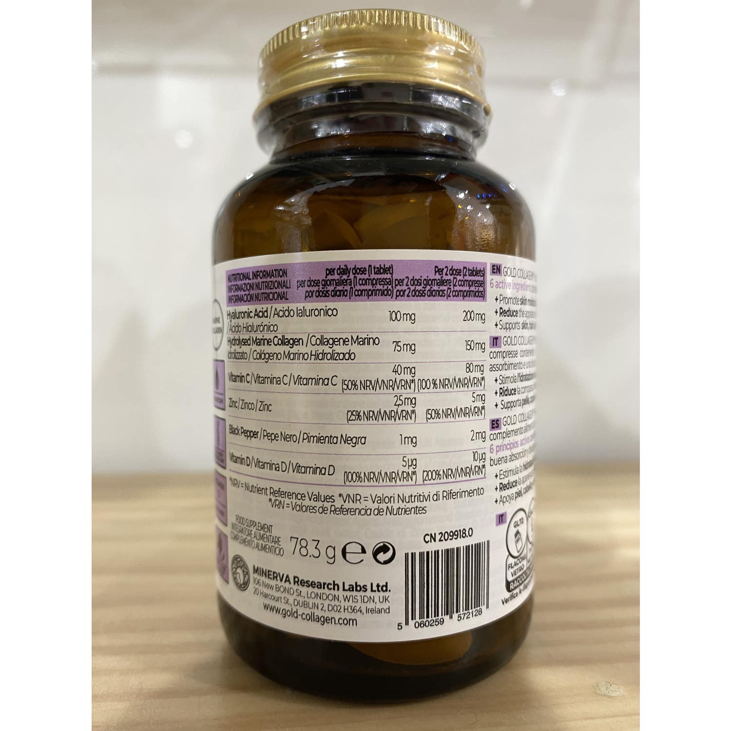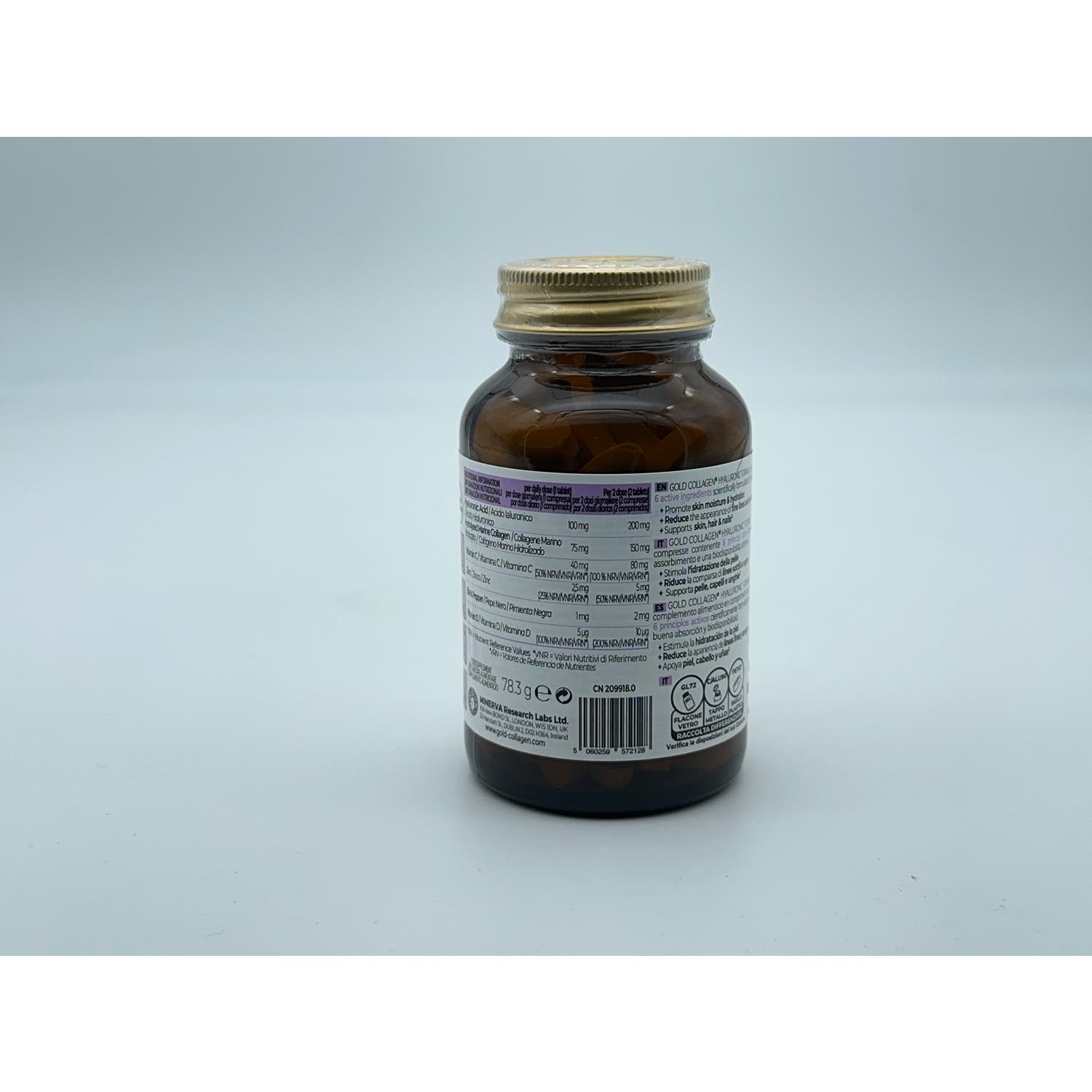 Gold Collagen Hyaluronic Formula 90comp es un complemento alimenticio con ácido hialurónico y vitamina C que contribuye a prevenir la pérdida de elasticidad e hidratación de la piel. Asimismo, ayuda a mantener la buena salud de las articulaciones. Contiene Colágeno Marino.
