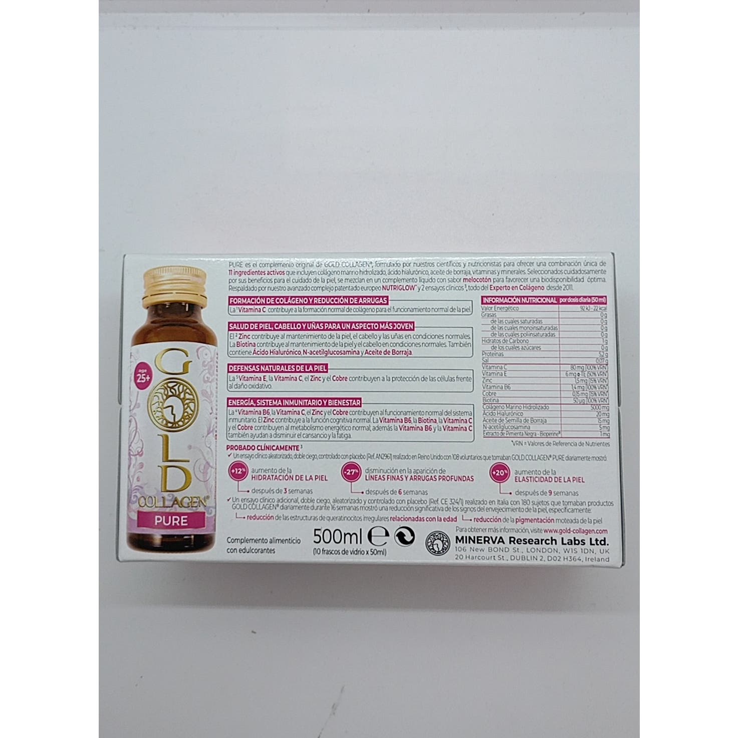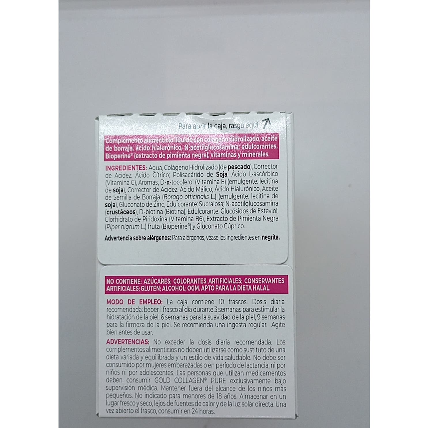 Gold Collagen Pure 10 días 1ud es un complemento alimenticio líquido que ayuda a reforzar la salud y la belleza de la piel, el cabello y las uñas.