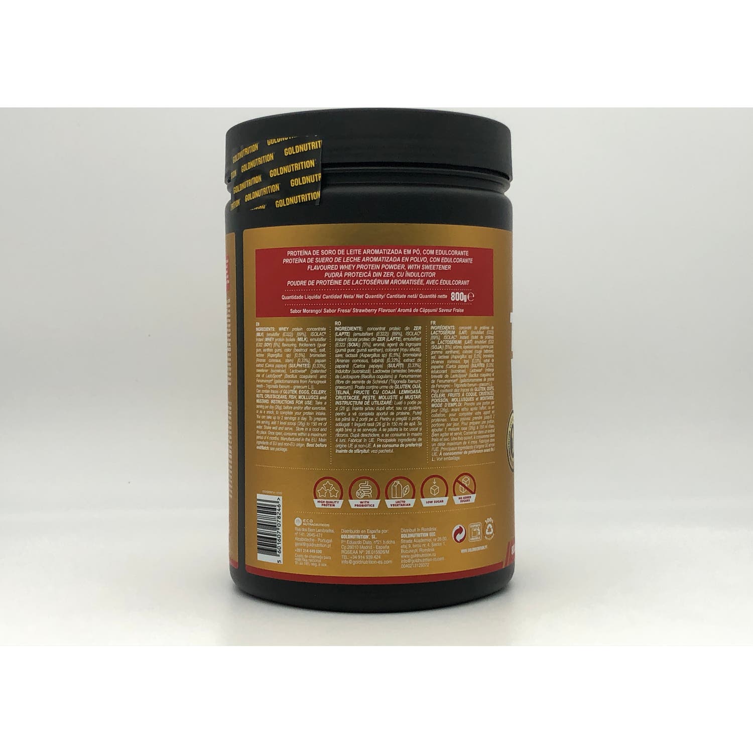Gold Nutrition Total Whey Strawberry 800gr es un complemento alimenticio con proteínas de suero concentradas y aisladas.