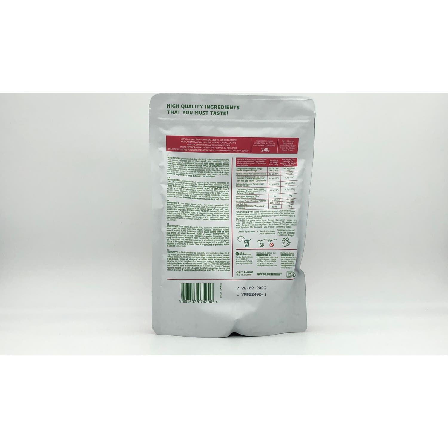 Proteína vegana sabor frambuesas con una composición que contiene todos los aminoácidos esenciales para el organismo, sin azúcares. Tiene un bajo contenido en grasas saturadas y aporta un 83% de proteínas vegetales. Elaborada con una mezcla patentada de vegetales, frutas y plantas, llamada Spectra, rica en antioxidantes y nutrientes. Adecuado para personas con intolerancia a la lactosa o a otro constituyente de proteínas animales. Con ingredientes de cultivos orgánicos.