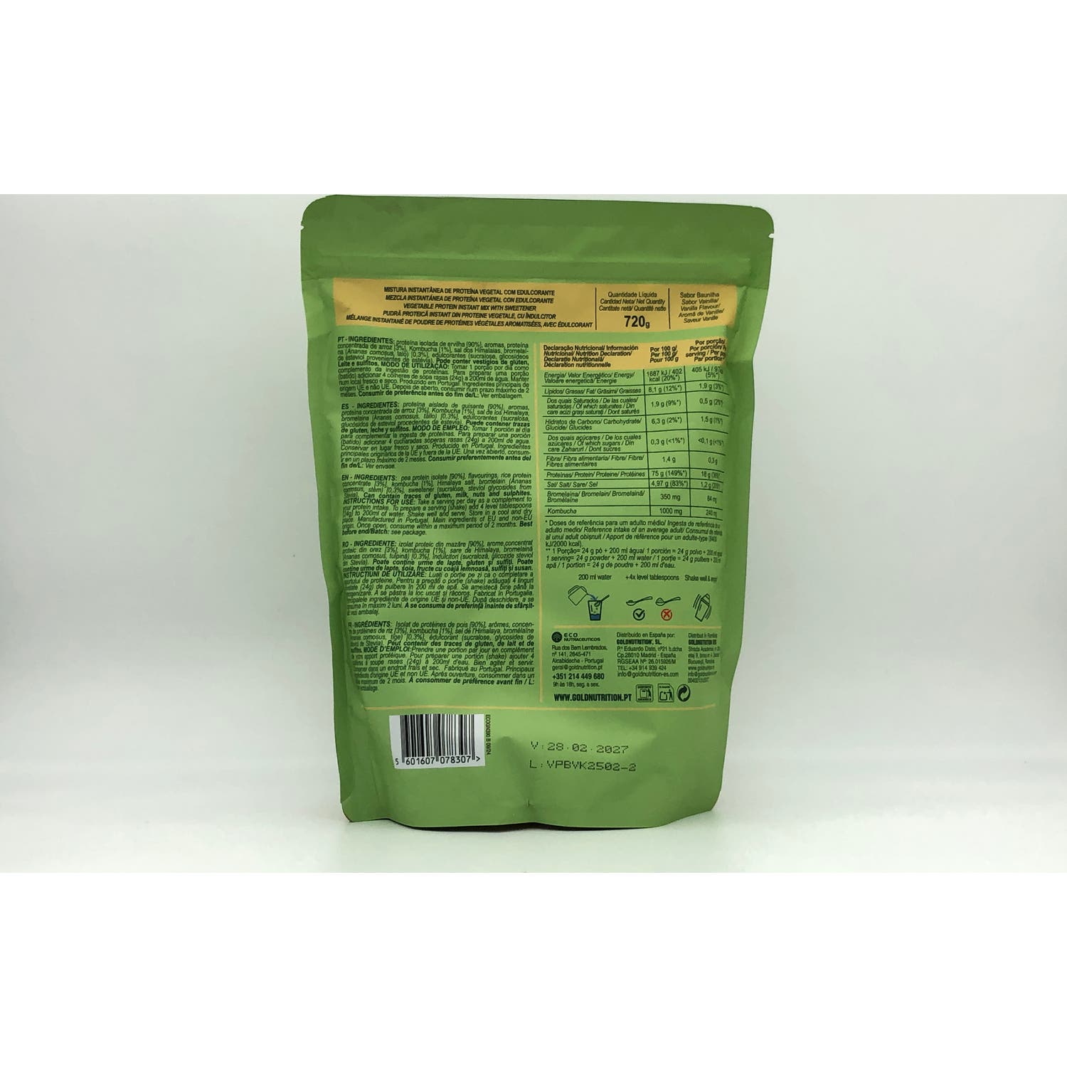 Gold Nutrition V-Protein Vainilla 720gr es una proteína vegetal que actúa como coadyuvante en procesos de aumento de masa muscular.