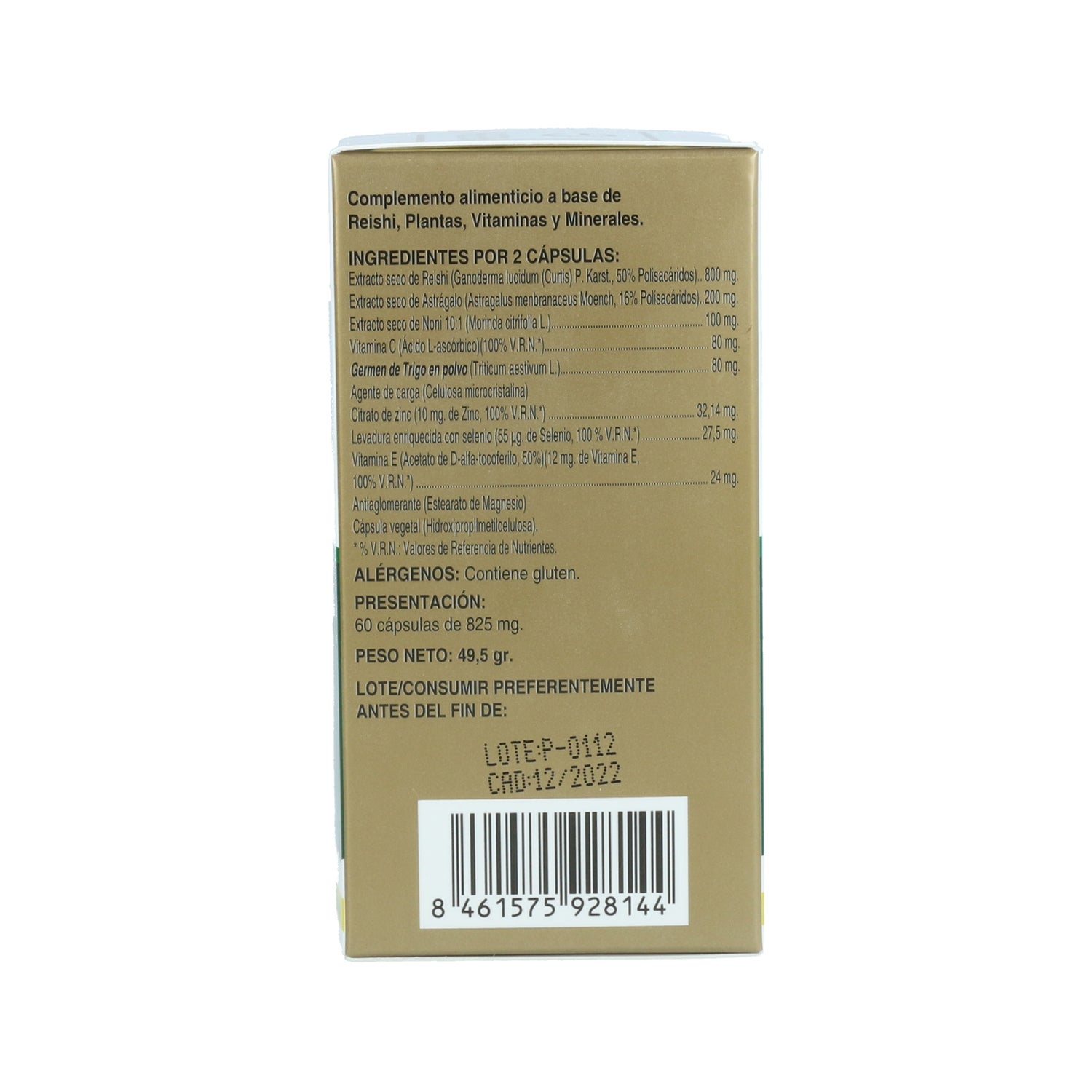 Contiene polisacáridos de interés (beta-glucanos) que dan soporte al sistema inmunitario. También contribuye al bienestar físico y emocional, por su aporte en ergosterol, aminoácidos esenciales, vitaminas del grupo B y minerales como el magnesio y el zinc. Asimismo, el Reishi tiene una densidad de nutrientes adecuada para su uso en deportistas.