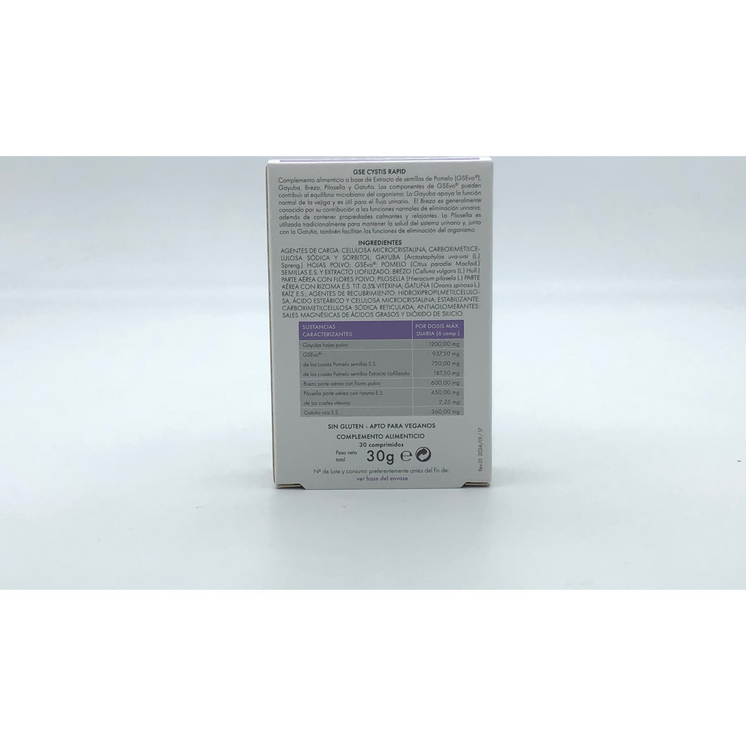 GSE Cystitis Rapid es un complemento alimenticio que ayuda a mantener una correcta función fisiológica del sistema urinario. Indicado en el tratamiento de cistitis aguda o cónica ya que ayuda a calmar los espasmos, la necesidad urgente de orinar o los síntomas de escozor.