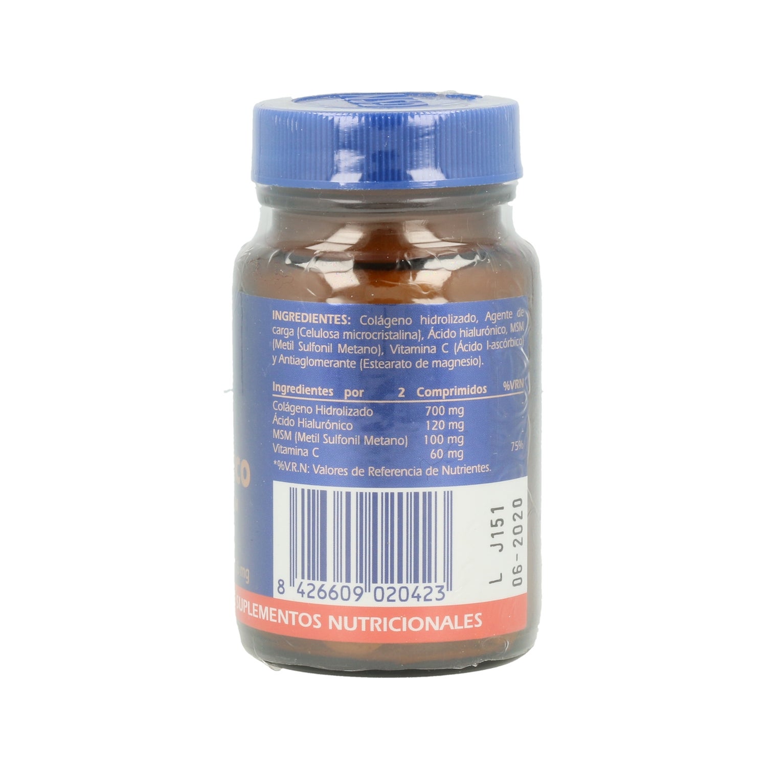 60 mg de ácido hialurónico; 350mg de colágeno hidrolizado tipo II, 50mg de MSM; 30mg de vitamina C.