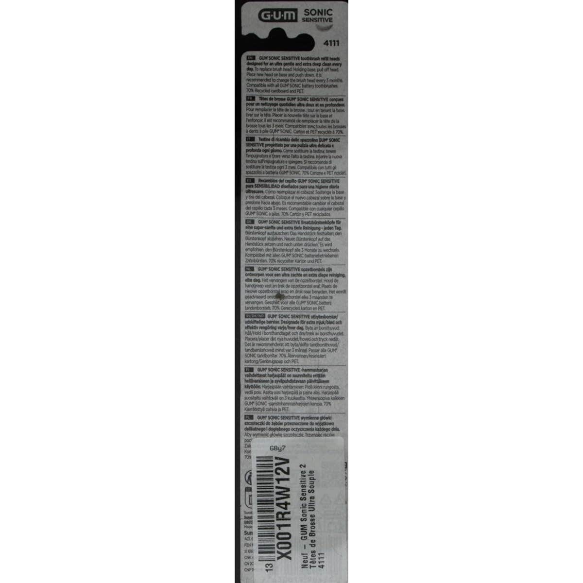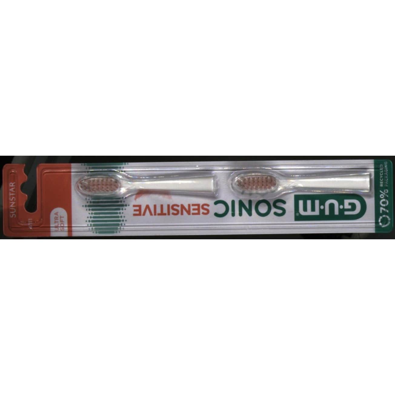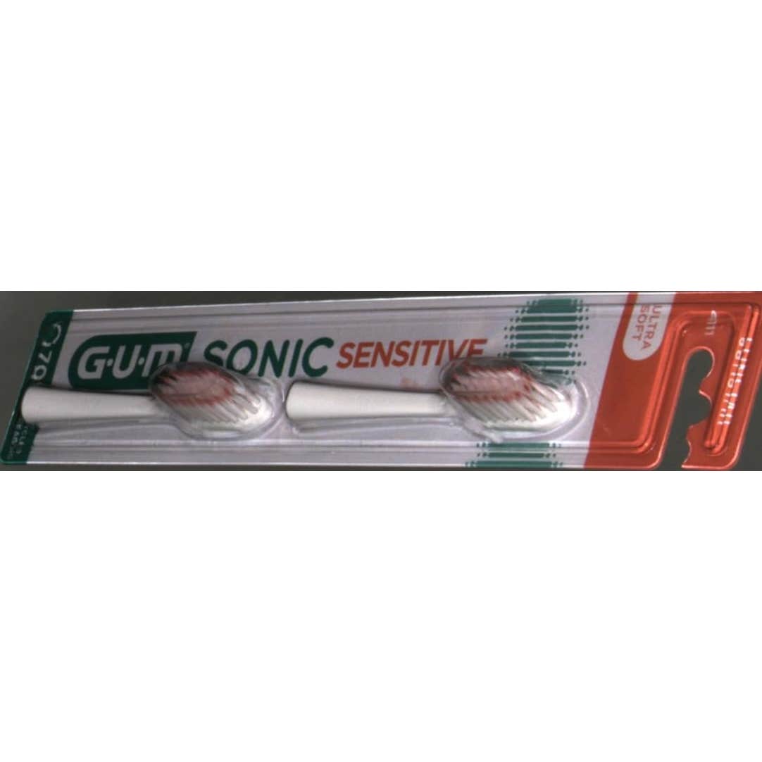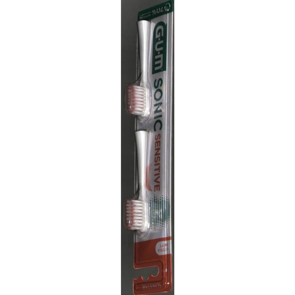 Cabezales de recambio de cepillo eléctrico GUM Sonic Sensitive. Paquete de 2 cabezales con filamentos muy suaves y flexibles.
