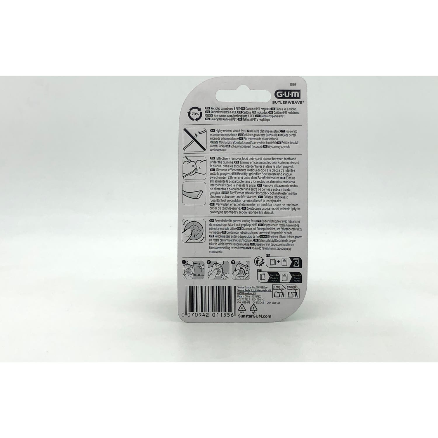 GUM Butlerweave Seda Dental con Cera 55m es un hilo dental que cuenta fuerte, suave y resistente al deshilachado, y se crea mediante un proceso de entrelazado especial.