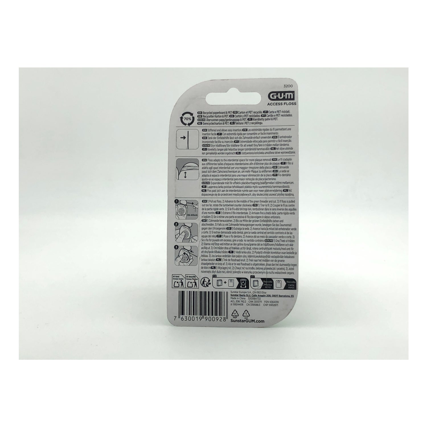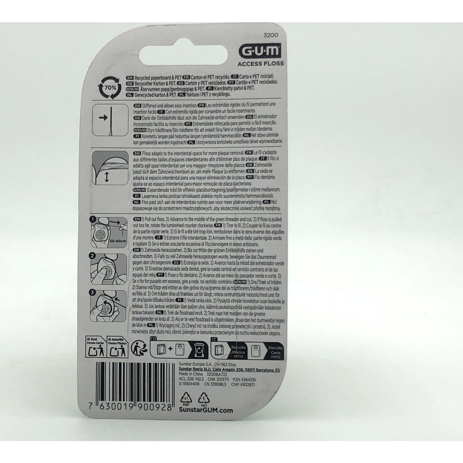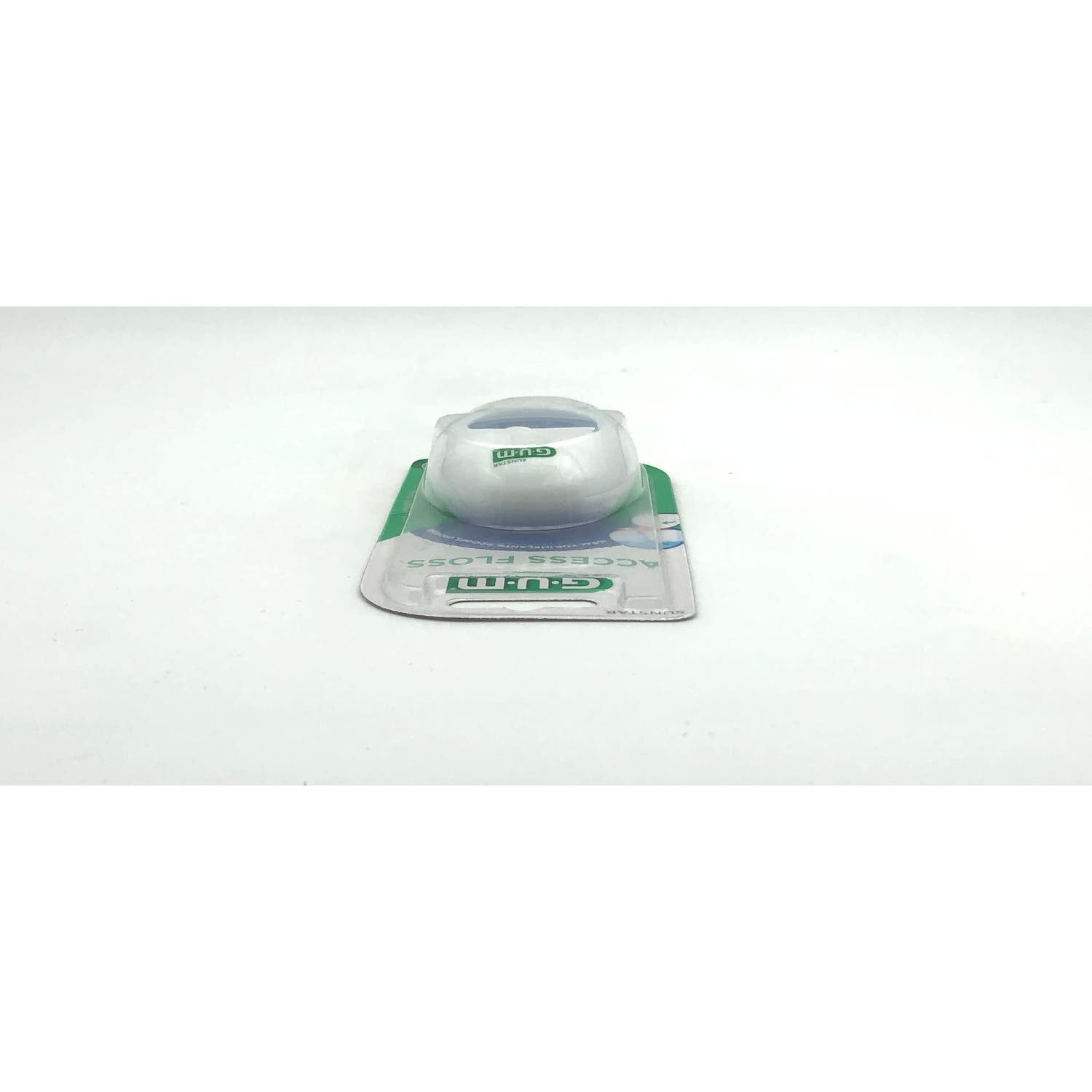 GUM® Implant Floss es una seda dental sin cera especialmente indicada para las personas que tienen una dentadura que ha sufrido daños severos y cuenta con implantes dentales, puentes o espacios entre los dientes más grandes de lo normal.