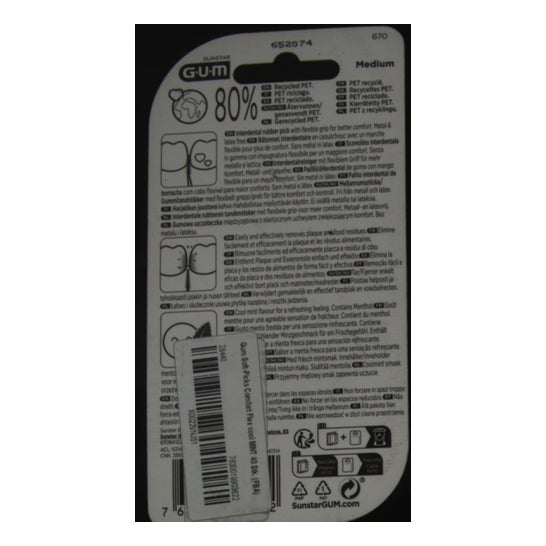 Palillos interdentales diseñados con un agarre más ancho y un cuello flexible para mayor comodidad y control. Ideal para espacios interdentales pequeños, puentes, aparatos de ortodoncia o encías sensibles. Con filamentos suaves y flexibles. Ayudan a estimular y micromasajear las encías. Con contienen ni látex, ni madera, ni metal. Para encías sensibles. Incluye un práctico estuche de viaje.