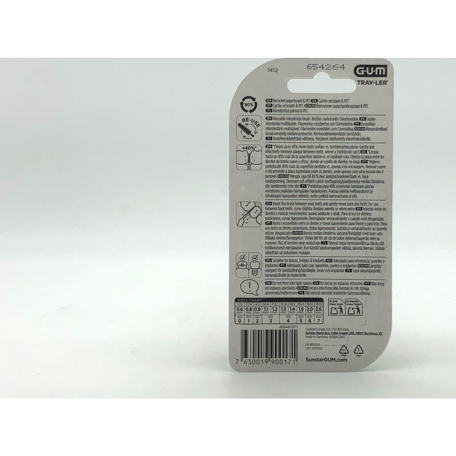 GUM Trav-Ler Cepillo Interdental 0.9mm 6uds permite eliminar la placa bacteriana de tu boca. Además, ofrece una mayor comodidad gracias a la flexibilidad de su cabezal y a sus filamentos cubiertos de teflón para prevenir daños en las encías.