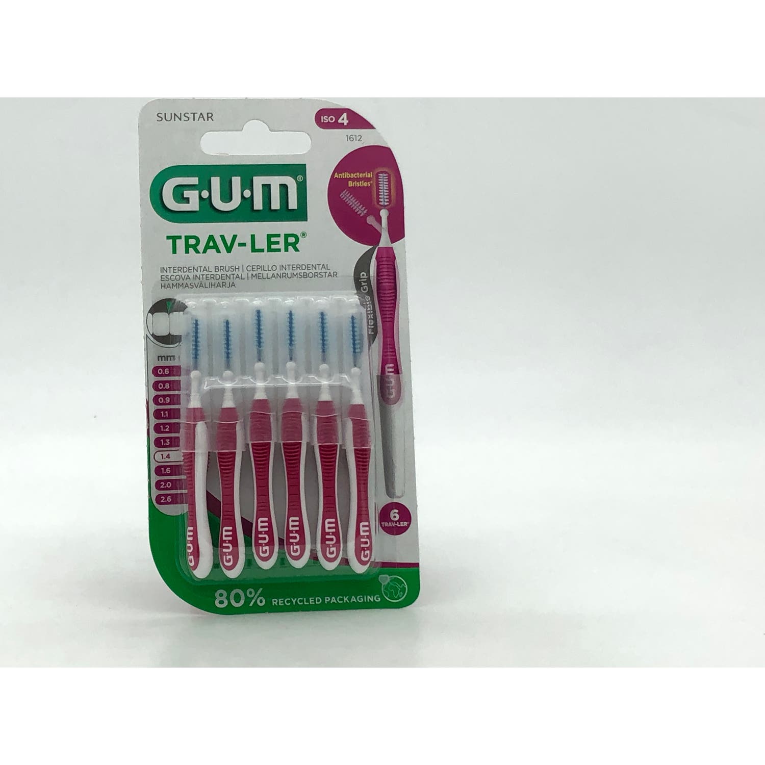 GUM Trav-Ler Cepillo Interdental 1.4mm 6uds es un cepillo interdental de tamaño muy pequeño perfecto para los viajes. Con filamentos sujetos a un eje central de alambre trenzado de acero inoxidable, cuyos filamentos están recubiertos con clorhexidina para mantener su higiene entre usos.