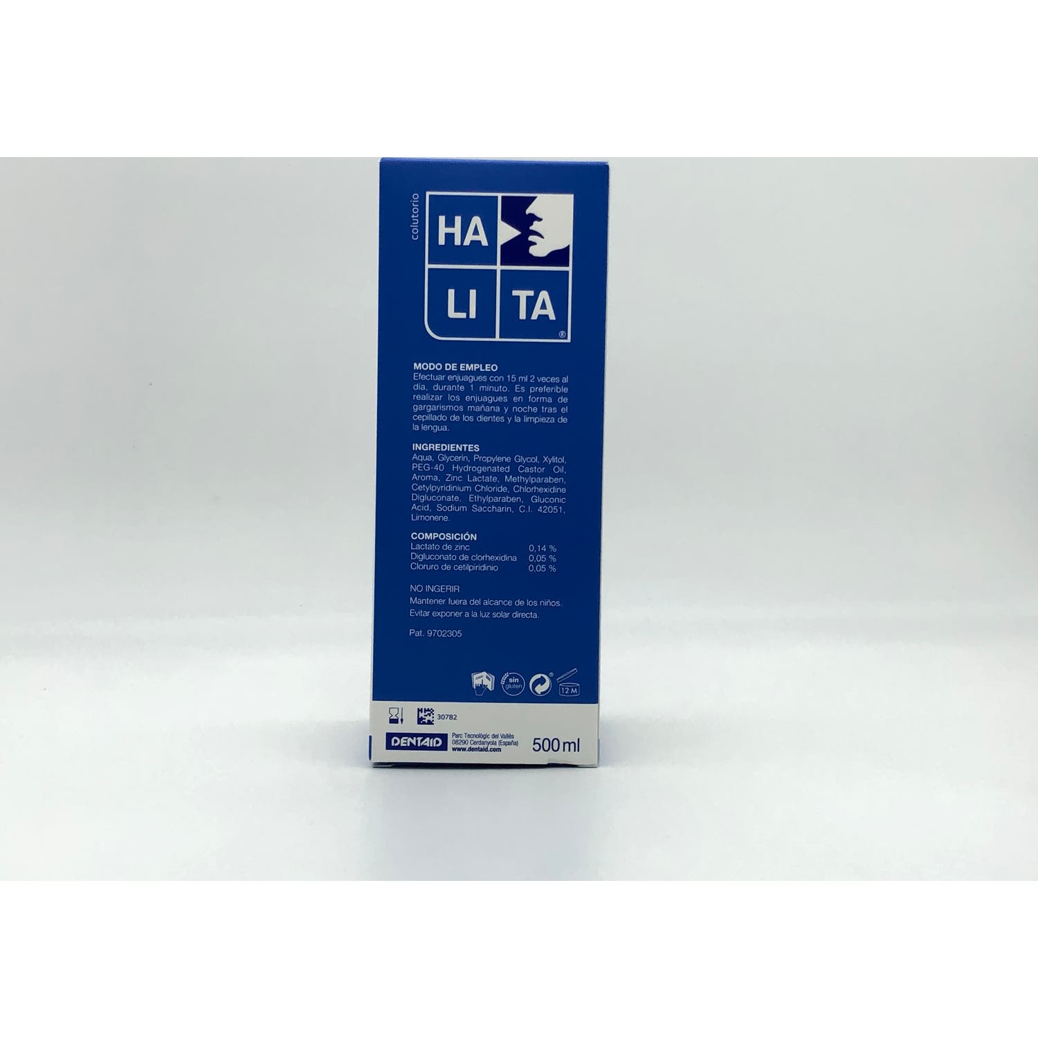 Halita Colutorio 500ml es un colutorio de uso habitual para el tratamiento de la halitosis (mal aliento crónico) o para el mal aliento transitorio producido por los alimentos, bebidas, tabaco, cambios hormonales, medicamentos... Este enjuague de Halita elimina las bacterias productoras de CVS (principales responsables del mal aliento) e impide su posterior crecimiento gracias al lactato de zinc.