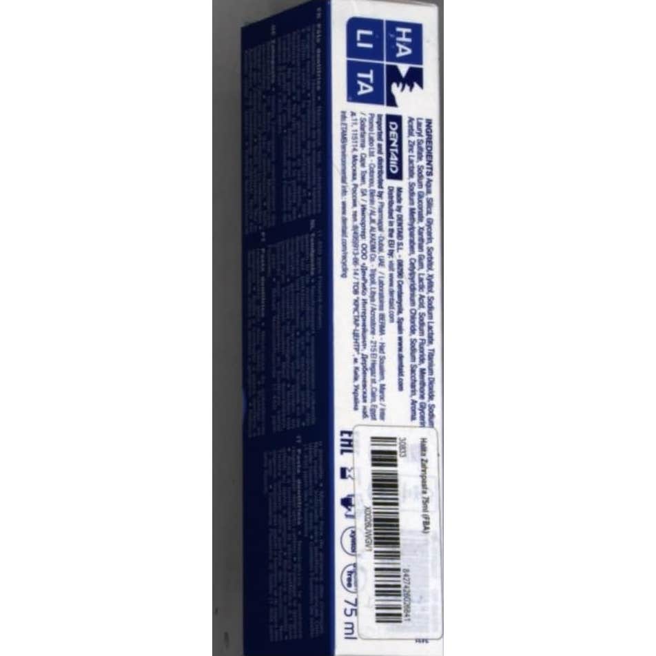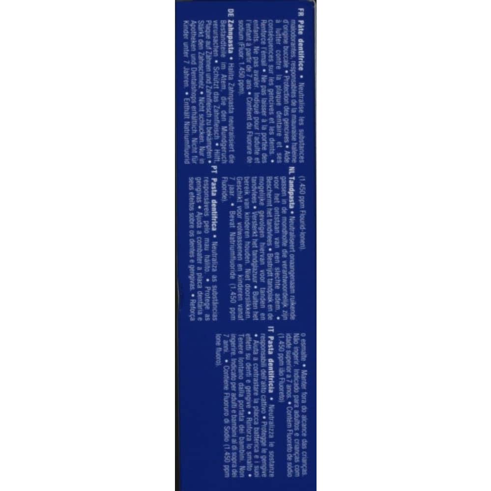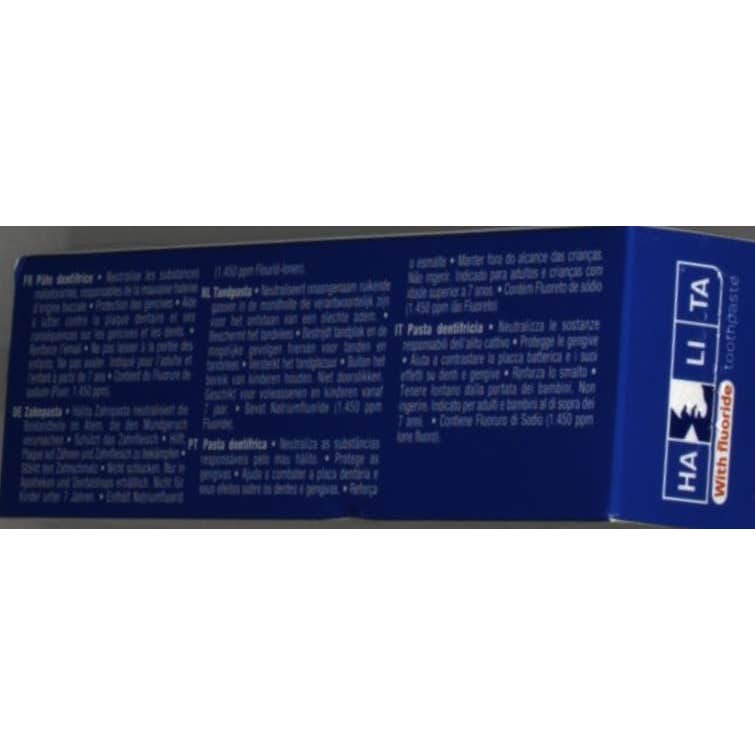 El mal aliento puede tener varias causas, entre ellas la presencia de una capa en el dorso de la lengua de la que emanan compuestos sulfurosos volátiles (CSV) malolientes. Estos CSV son la causa del aliento desagradable por la mañana, pero también durante el día. Protege las encías, refuerza el esmalte y ayuda a combatir la placa. Proporciona un aliento fresco y saludable de larga duración. INFORMACIÓNHalita Pasta dentífrica 75 ml neutraliza las sustancias malolientes responsables del mal aliento en la boca. INDICACIÓN