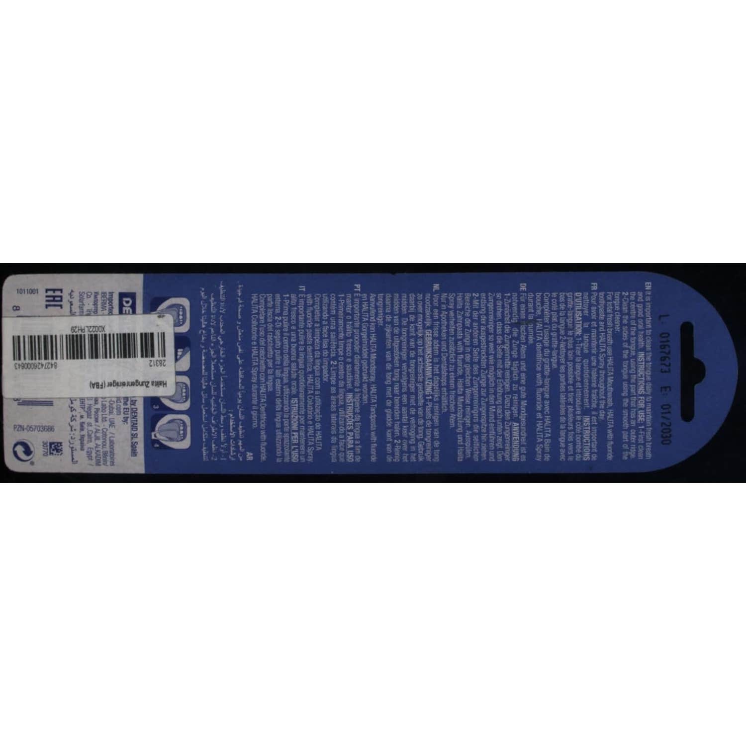 Halita Raspador Lingual ayuda a mantener un aliento fresco mediante la limpieza diaria de la lengua. Halita Raspador Lingual es un tratamiento contra el mal aliento que complementa el cepillado dental y ayuda a eliminar la capa lingual cargada de bacterias, que contienen las bacterias que producen los CVS (compuestos volátiles de azufre malolientes), principales causantes del mal aliento. Sus dos caras, una con perfil adaptado a la lengua y otra con perfil liso para la limpieza de los laterales, facilitan la limpieza del dorso de la lengua, principal reservorio de las bacterias responsables del mal aliento. Halita Raspador Lingual ayuda a mantener un aliento fresco mediante la limpieza diaria de la lengua. Halita Raspador Lingual es un tratamiento contra el mal aliento que complementa el cepillado dental y ayuda a eliminar la capa lingual cargada de bacterias.