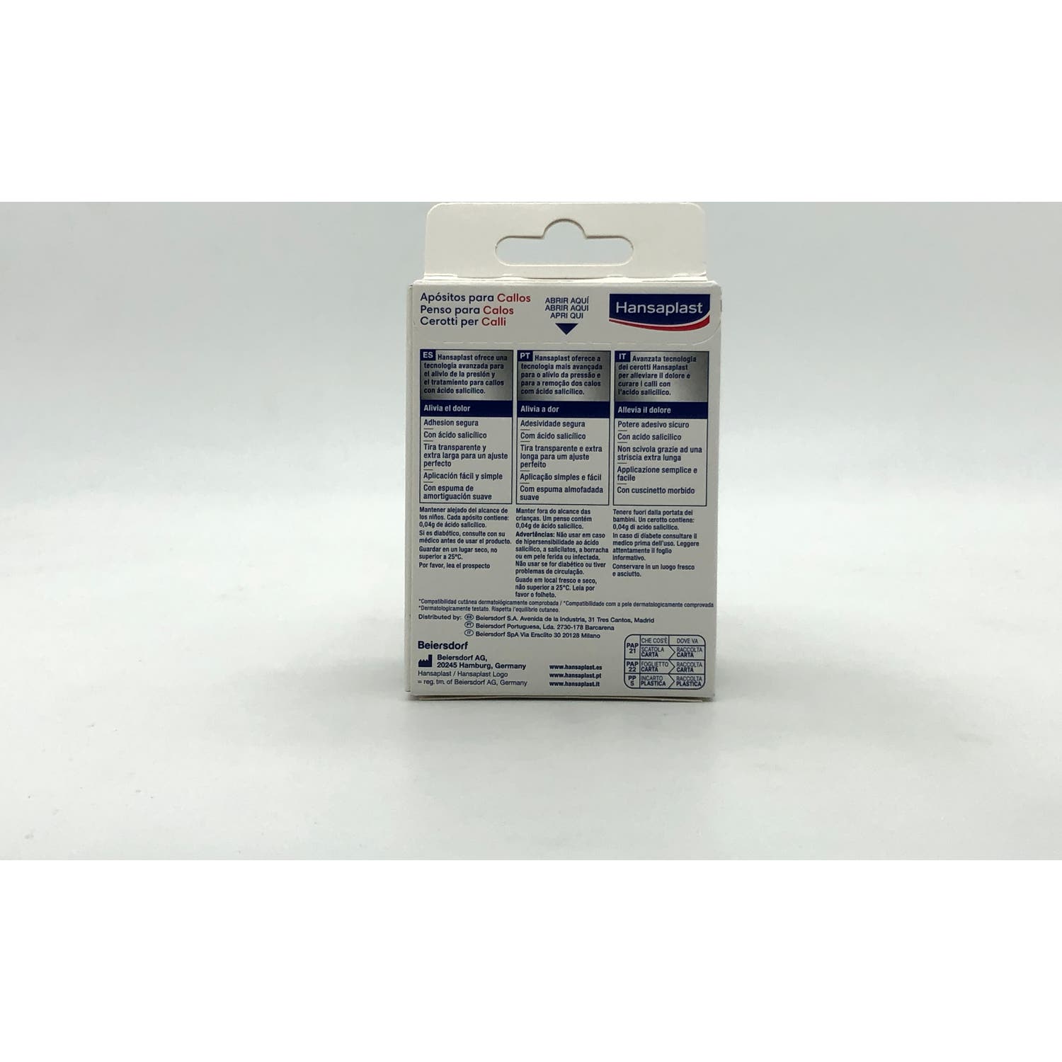 Hansaplast Apósitos Para Callos 8uds son parches protectores que contribuyen a aliviar el dolor producido por el roce y la presión que el calzado ejerce sobre los callos de los pies.
