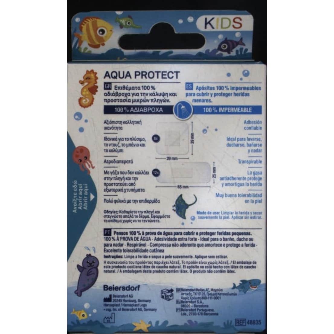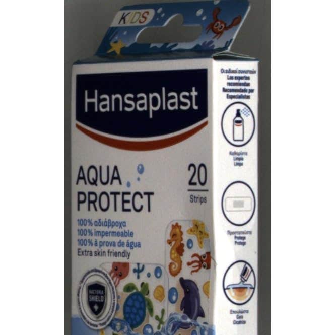 Hansaplast Aqua Protect Kids 20 apósitos son apósitos infantiles diseñados para ofrecer una protección impermeable, ideales para cubrir pequeñas heridas mientras los niños se bañan o nadan.