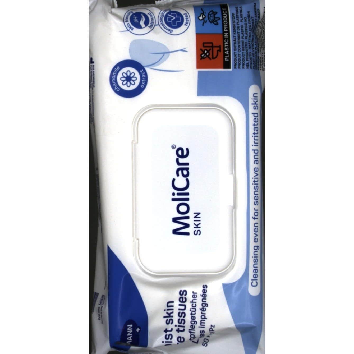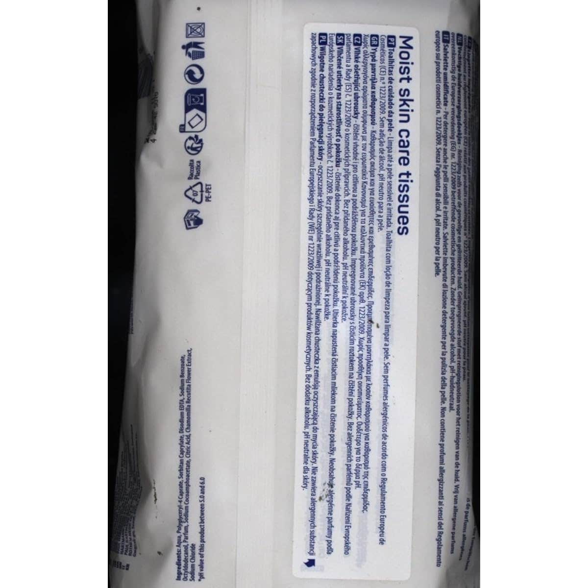 Toallitas húmedas diseñadas para la higiene cutánea práctica y diaria en casos de incontinencia urinaria. Son adecuadas para utilizar diariamente, ya que no alteran el pH natural de la piel. Contienen una solución limpiadora a base de tensioactivos suaves que ayudan a mantener la piel limpia e hidratada. Enriquecidas con extracto de manzanilla que contribuye a calmar la epidermis irritada, aportando un efecto fresco. La composición no tiene alcohol. Probadas dermatológicamente.