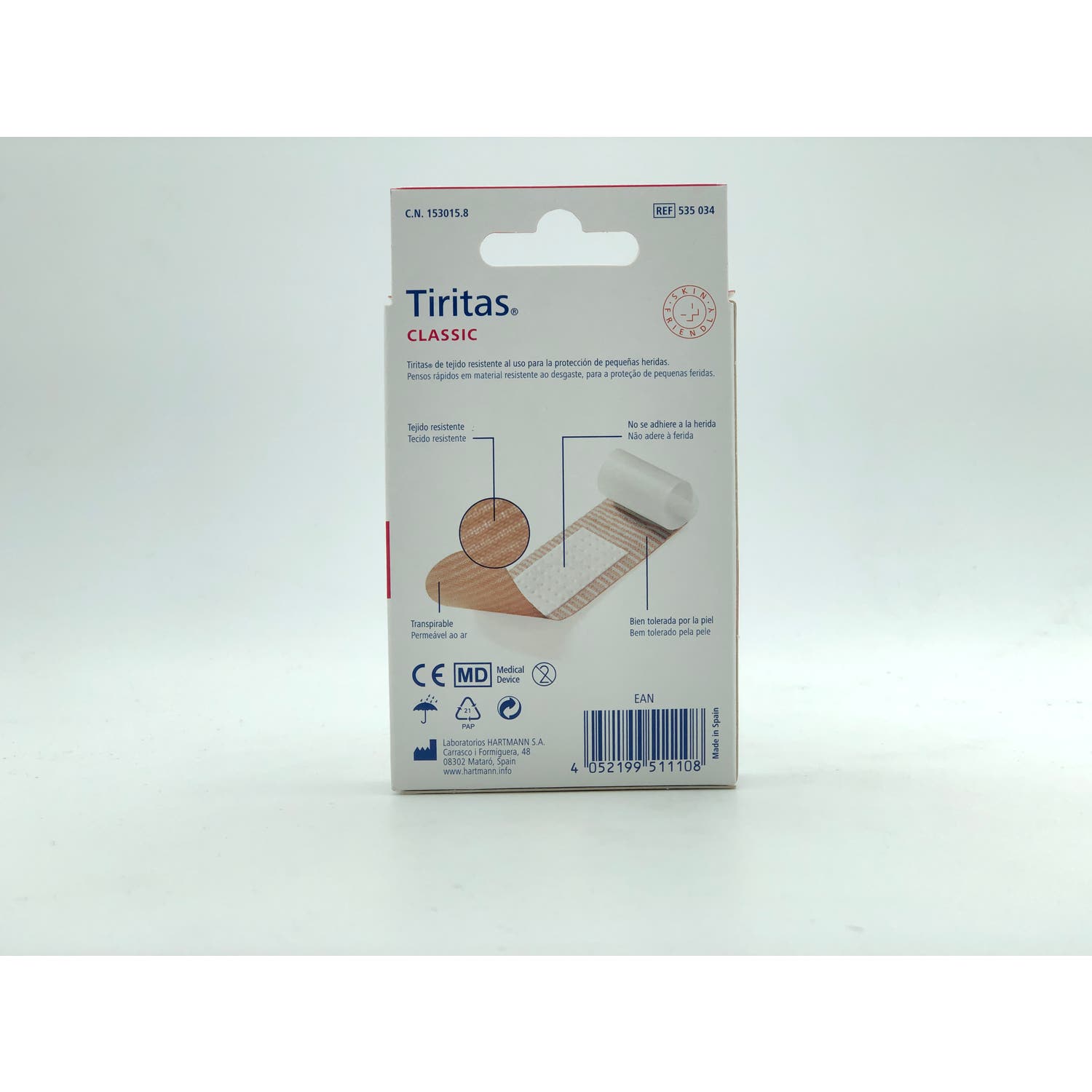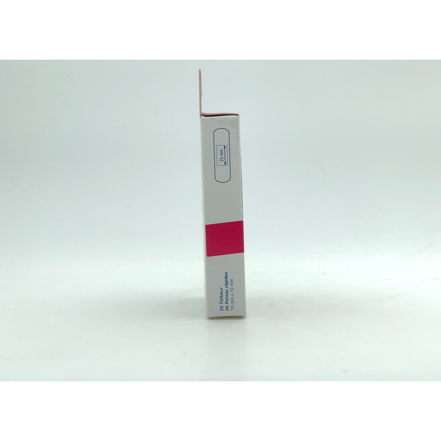 Tiritas clásicas de tejido en color piel. Su adhesivo de caucho sintético es hipoalergénico para no causar irritación ni rojeces en las pieles más sensibles y puede despegarse de la piel sin causar dolor, y su gasa extra absorbente asegura una buena absorción de sangre y secreciones hasta que la herida esté cerrada, siendo ideal para aislarla de la contaminación exterior y ayudar a evitar así infecciones, siendo a la vez también ideal para proteger la zona de algún otro traumatismo que pudiera complicar la curación. Su medida es de 19x72 milímetros y son flexibles para poder ser utiliza prácticamente en cualquier zona.