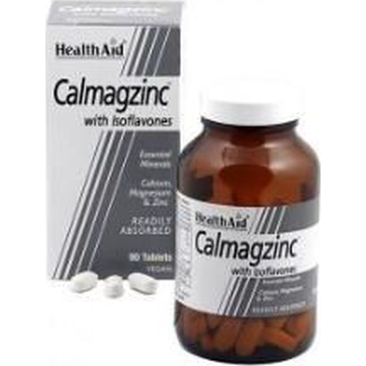 Health Aid Calmagzinc 90 Comprimidos es un complemento alimenticio que contiene calcio, magnesio, zinc, boro e isoflavonas de soja, ideal para mantener un sistema óseo saludable. Ayuda a aliviar los calambres menstruales y musculares, así como a reducir los síntomas asociados con la osteoporosis y la artritis.