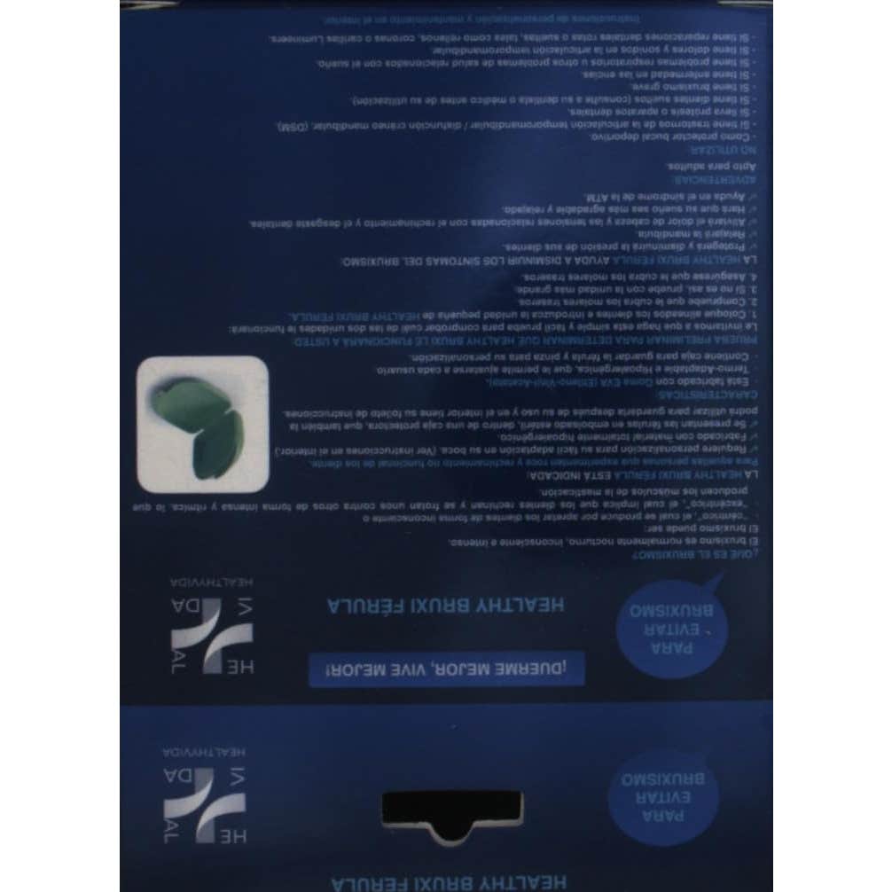 Molde hipoalergénico y termoajustable para la mandíbula fabricado en goma EVA. Ayuda a reducir los ronquidos ya que mantiene la lengua en posición adelantada y permite el paso normal del aire durante las horas de sueño. Incluye una espátula y una caja para almacenarla.