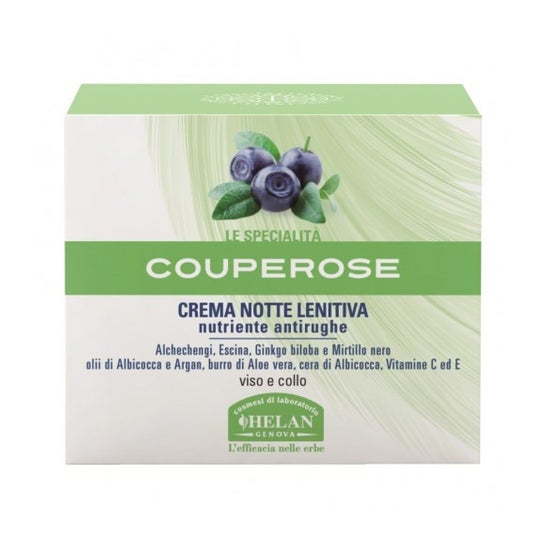 Crema de noche que ayuda a calmar la piel y defenderla de cualquier reacción alérgica. Adecuada para proporcionar un plus de nutrición con un simple masaje sobre la piel. Está compuesta por extractos de alchechengi, escina, el principio activo del castaño de indias, ginkgo biloba, arándano, aceites de albaricoque y argán, manteca de Aloe vera, cera de albaricoque y las vitaminas C y E. Contribuye en la protección y prevención del envejecimiento cutáneo de las pieles hipersensibles, fácilmente enrojecidas y con cuperosis.
