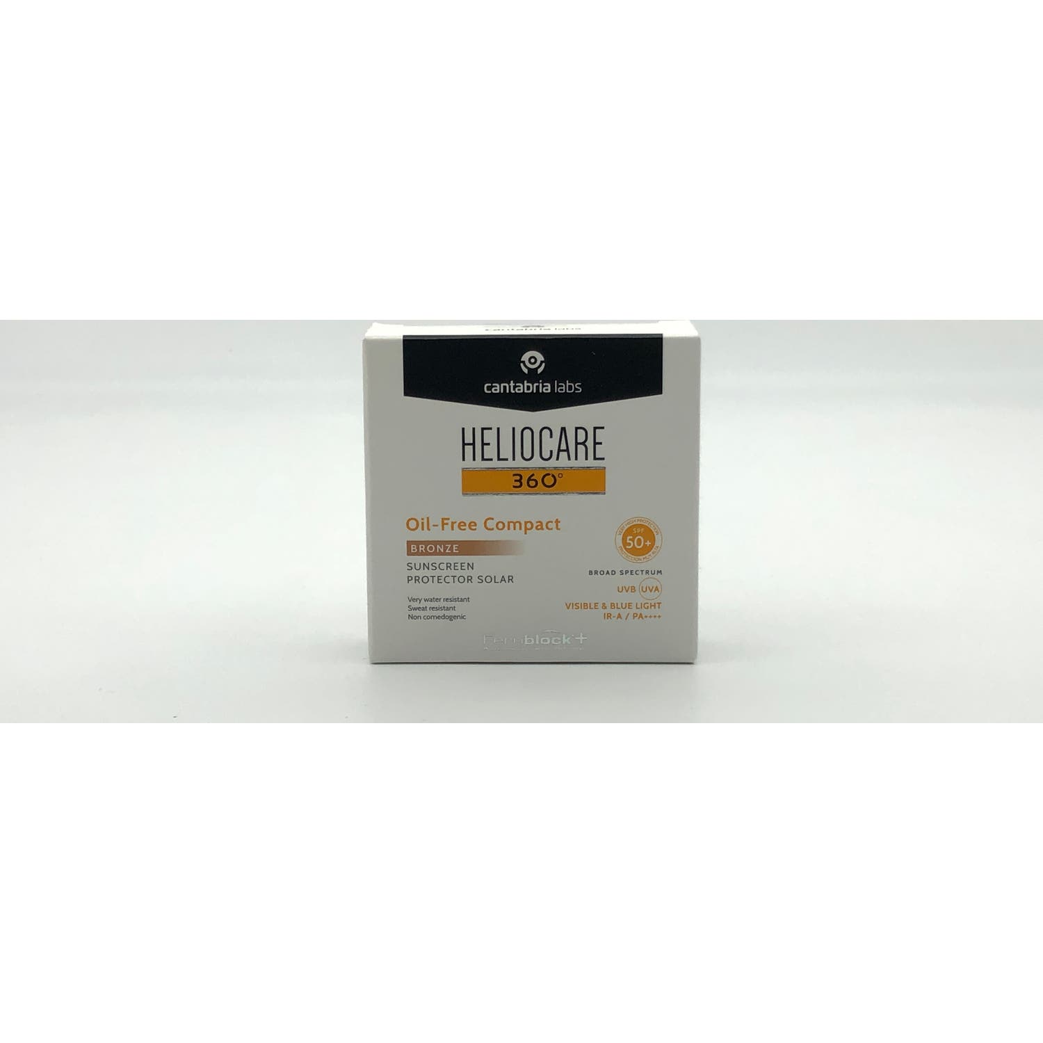 Heliocare 360 Oil-Free Compact SPF50+ Bronze 10g es fotoinmunoprotección muy alta en formato crema compacta con color. Proporciona un tono de buen aspecto, ideal para la reaplicación. Muy resistente al agua y al sudor. Fórmula matificante y no comedogénica.