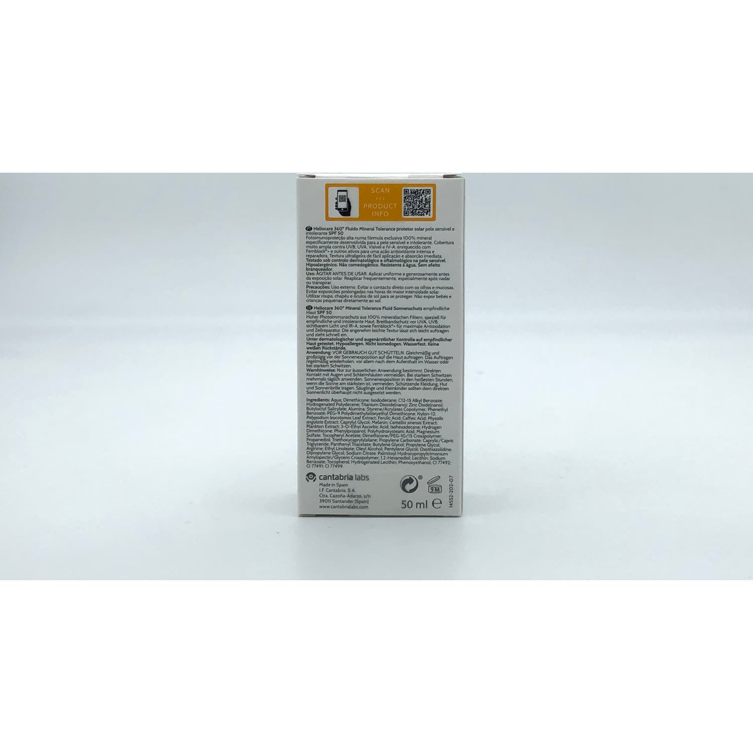 Heliocare 360º Mineral Tolerance Fluid Protector Solar SPF50 50ml es un fotoprotector de amplio espectro que proporciona una alta protección solar frente a la radiación UVB, UVA, HELV e IR-A.