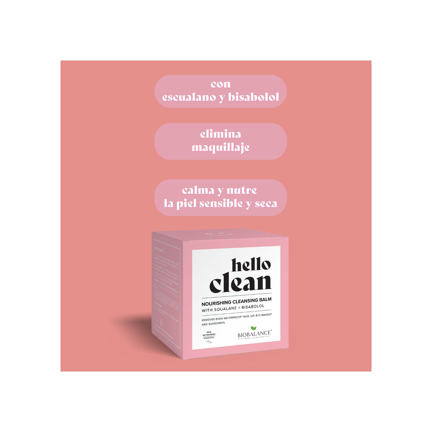 Hello Clean bálsamo limpiador reductor de poros 3 en 1 es un limpiador suave que se transforma de un bálsamo con textura similar a un sorbete a un aceite sedoso cuando se aplica sobre la piel.