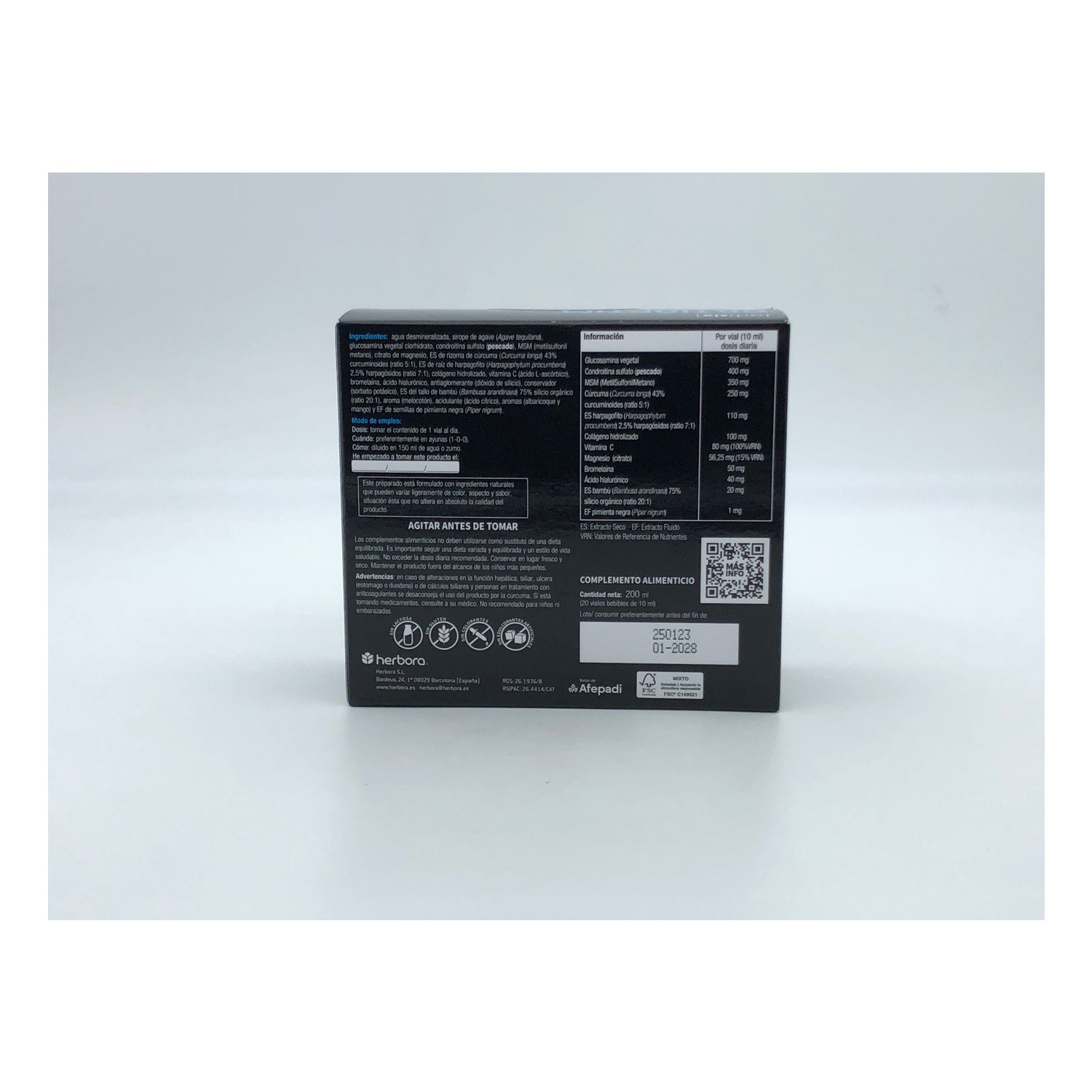 Su fórmula rica en Vitamina C y Magnesio contribuye a la formación normal del colágeno de los huesos y cartílagos. Además, contiene glucosamina vegetal, cúrcuma y colágeno hidrolizado, entre otros ingredientes, para una acción sinérgica.