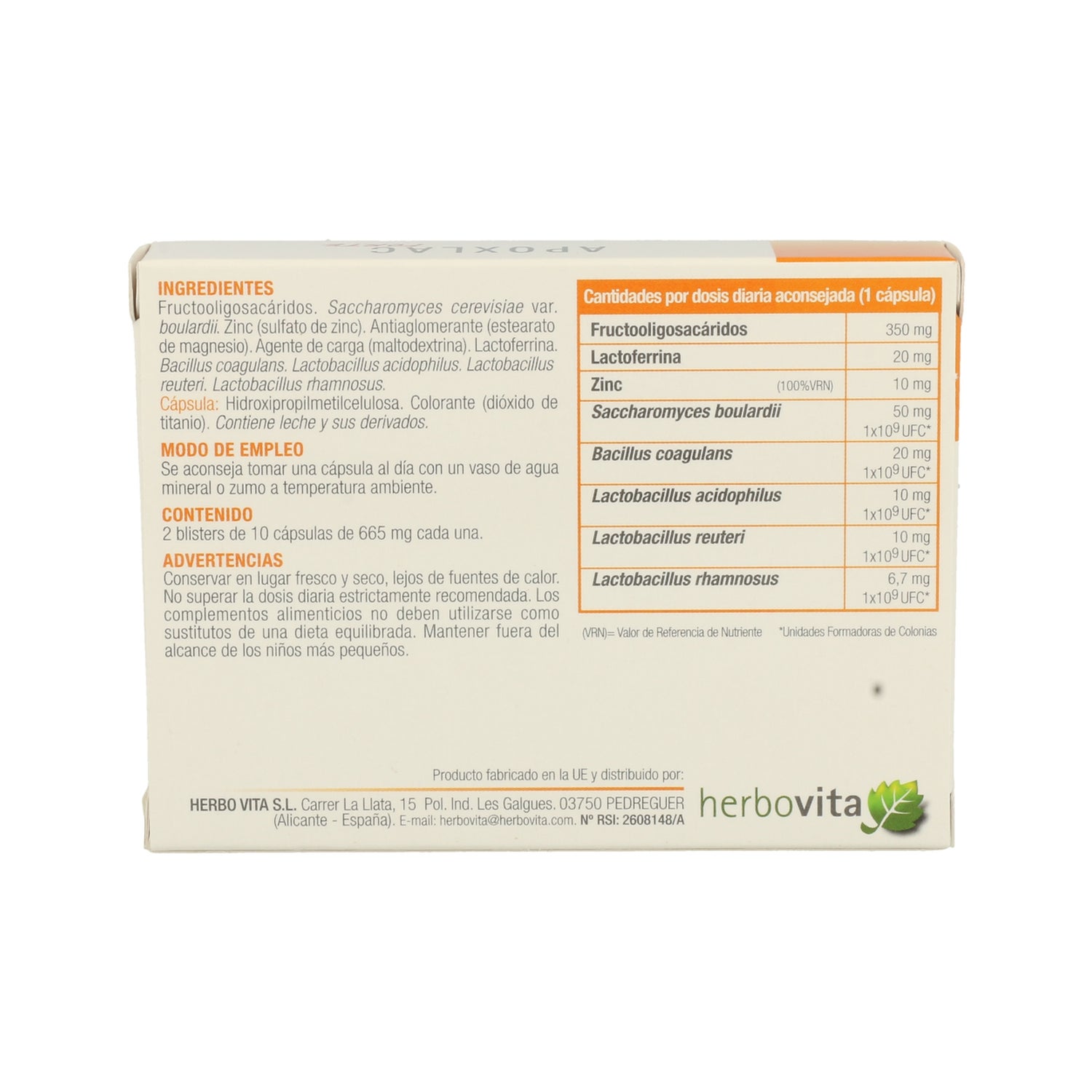 Complemento alimenticio en formato cápsulas y elaborado a base de probióticos que contribuyen a tener una mejor salud intestinal. Con lactoferrina, que actúa directamente contra los microbios patógenos, modula la respuesta inmunitaria y ejerce