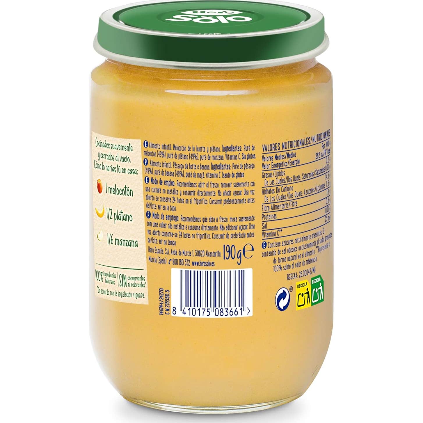 Hero Tarrito Melocotón Plátano 190 g es un tarrito de frutas indicado para introducir melocotón y plátano en la alimentación del bebé a partir de los 4 meses. Ofrece una textura suave y homogénea, elaborada con ingredientes 100% naturales.