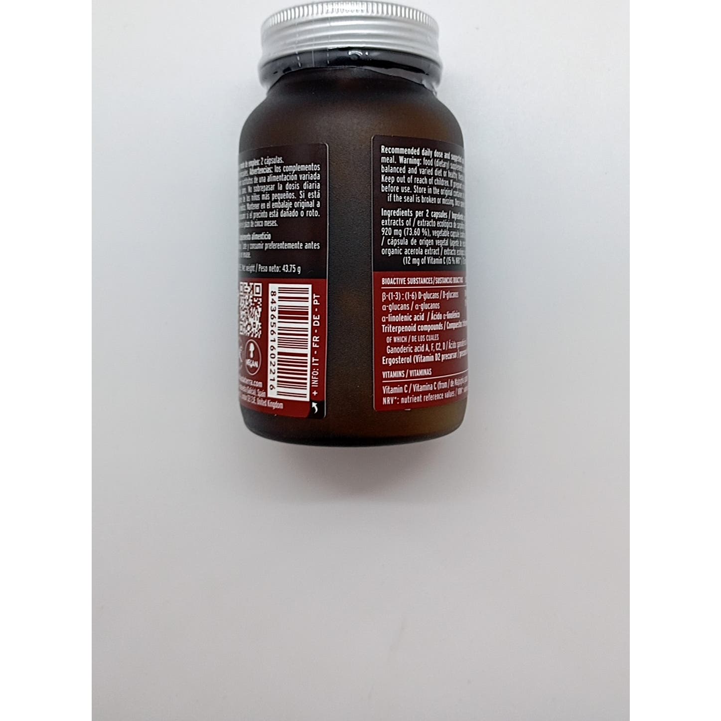 Complemento alimenticio vegetal formulado a base de extracto de reishi, rico en bataglucanos y fenoles. No contiene gluten, soja ni lactosa.
