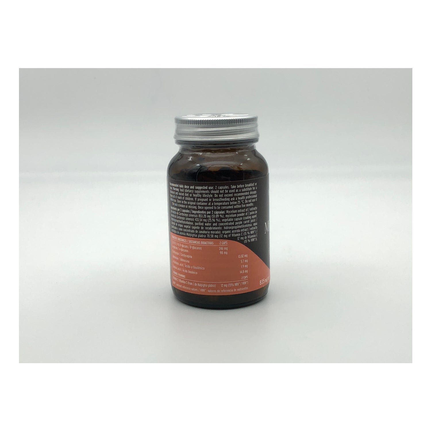 Complemento alimenticio elaborado a base de extracto puro del hongo medicinal Cordyceps Sinensis y vitamina C. Es fuente natural de: