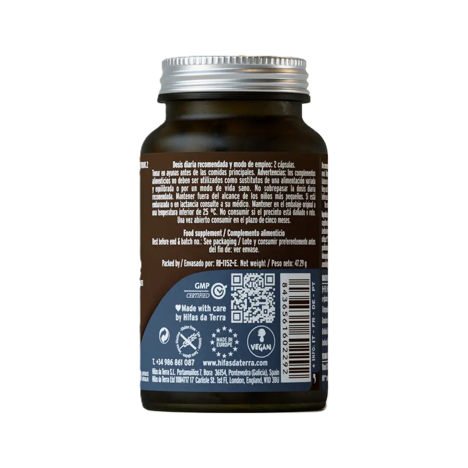Además, cuenta con un elevado ratio de inmunomoduladores del chaga (más Reishi, el Maitake, el Shiitake y el Champiñón del sol) que permiten activar más receptores celulares y generar mayor efecto.